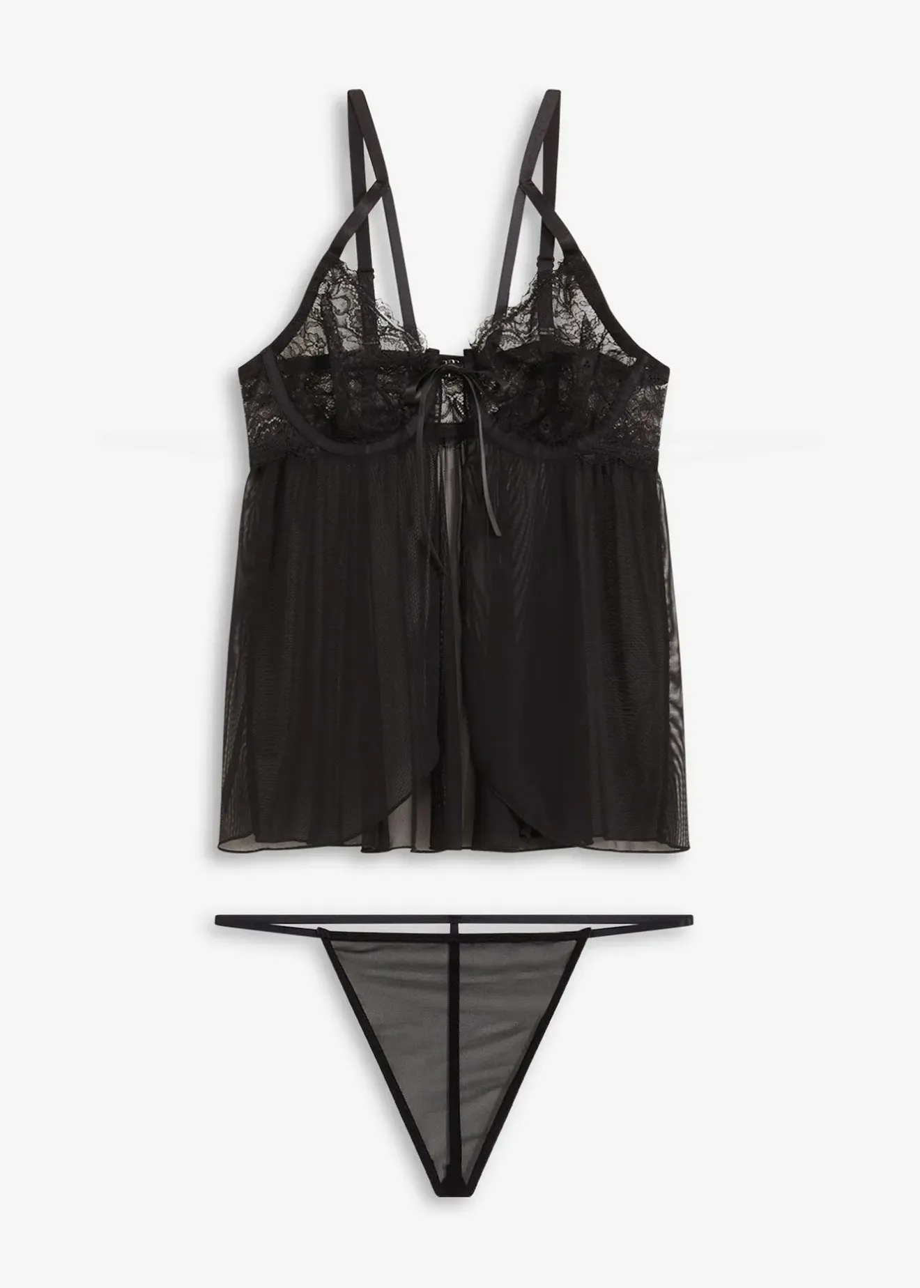 Babydoll et string (ens. 2 pces) en dentelle délicate et mesh transparent