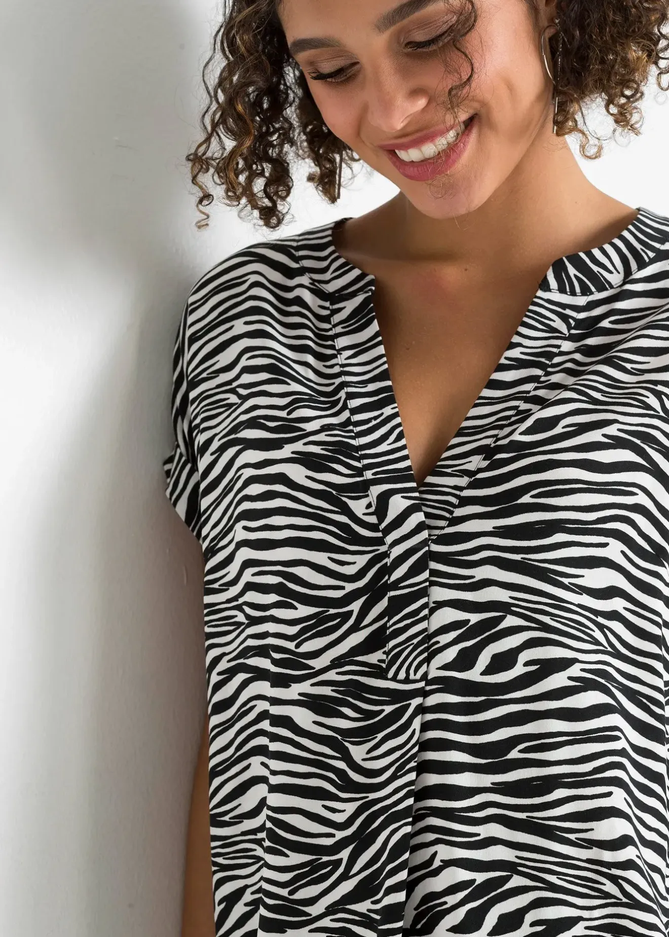 Blouse moderne de BODYFLIRT. Blouse dotée d’un col Henley. Long. env. 64 cm.