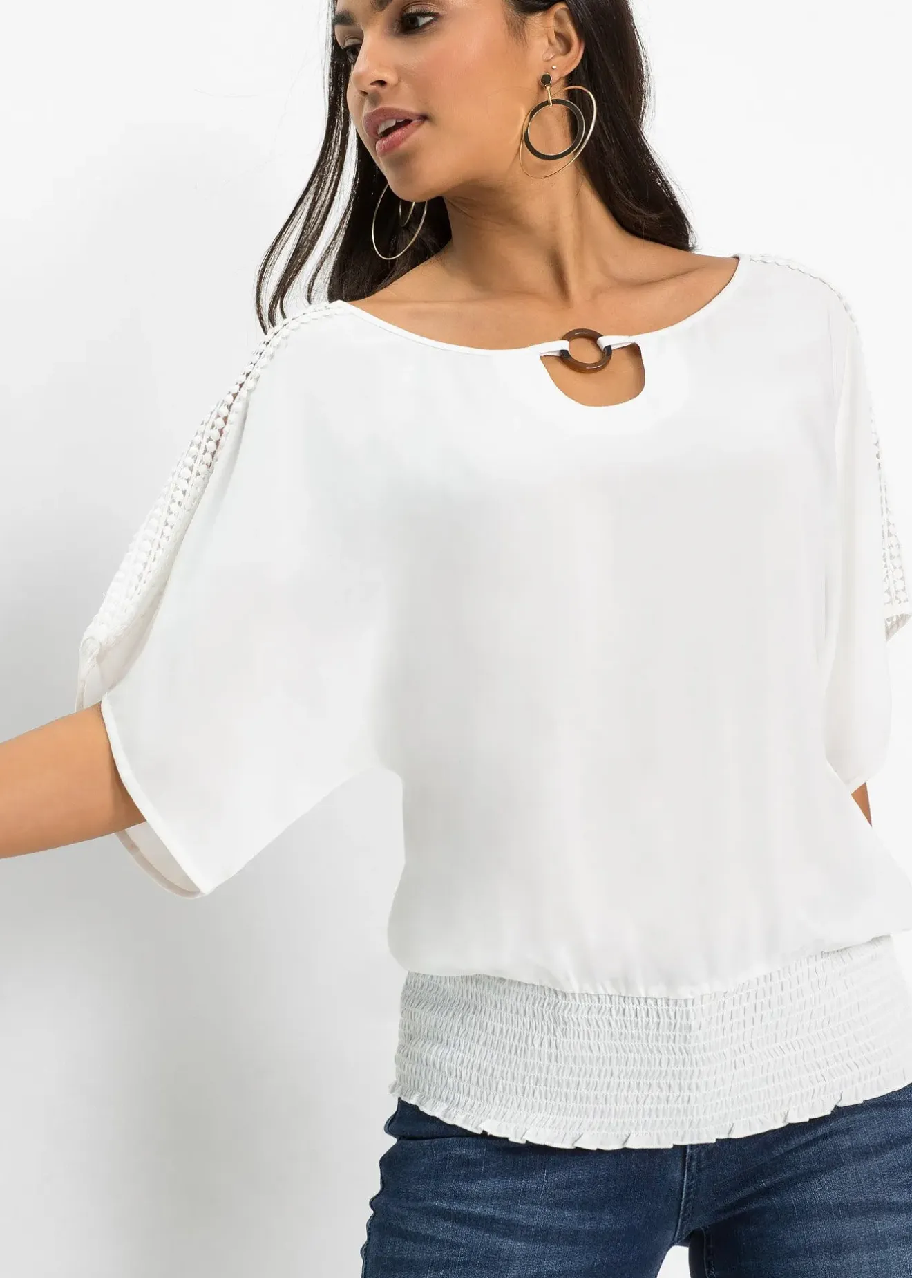 Jolie blouse avec dentelle sur les épaules. Elle finalise chaque tenue à merveille. Long. d’env. 66 cm à 68 cm, lavage machine.