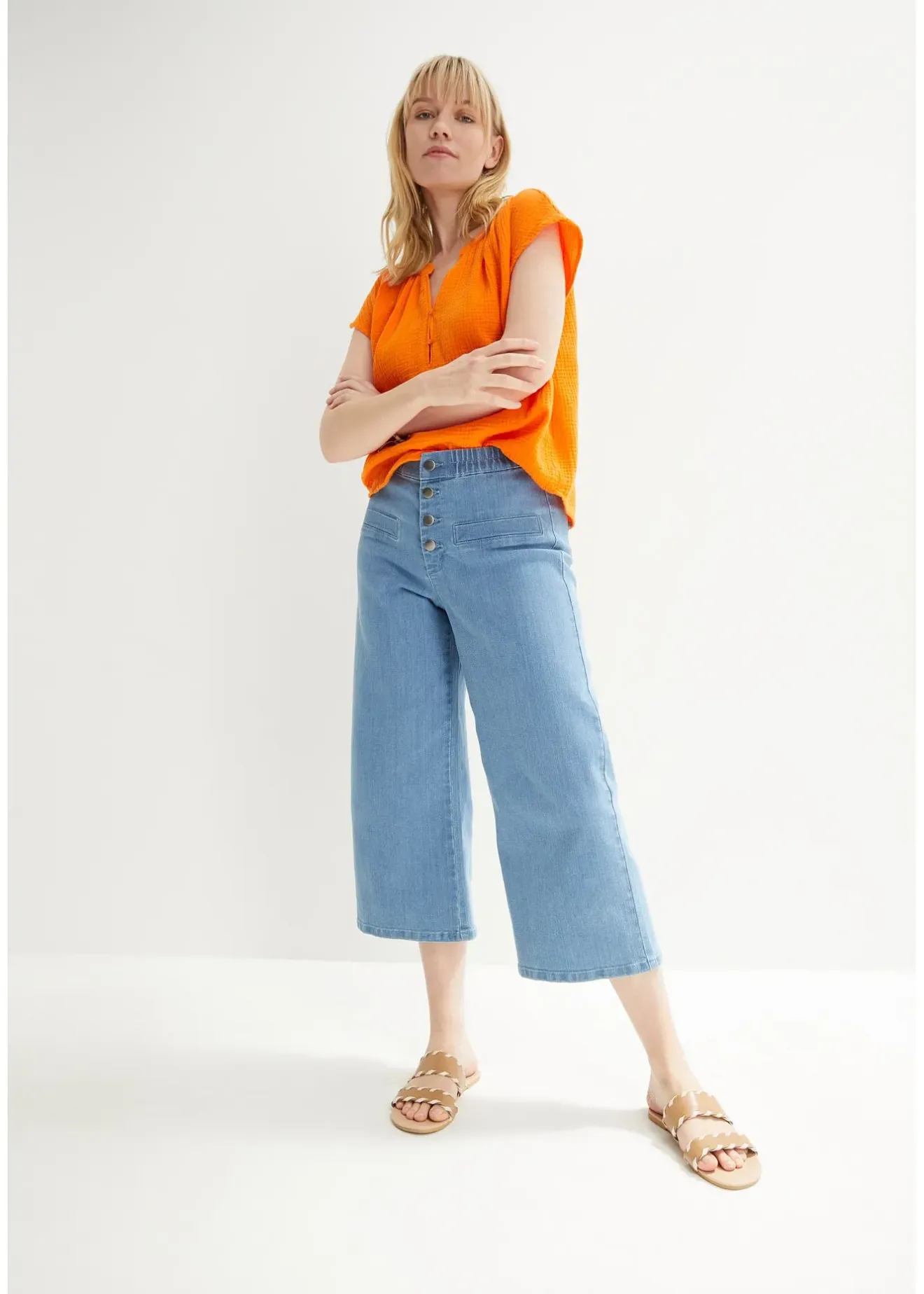 Blouse tendance en gaze de coton avec col en V et épaules descendues