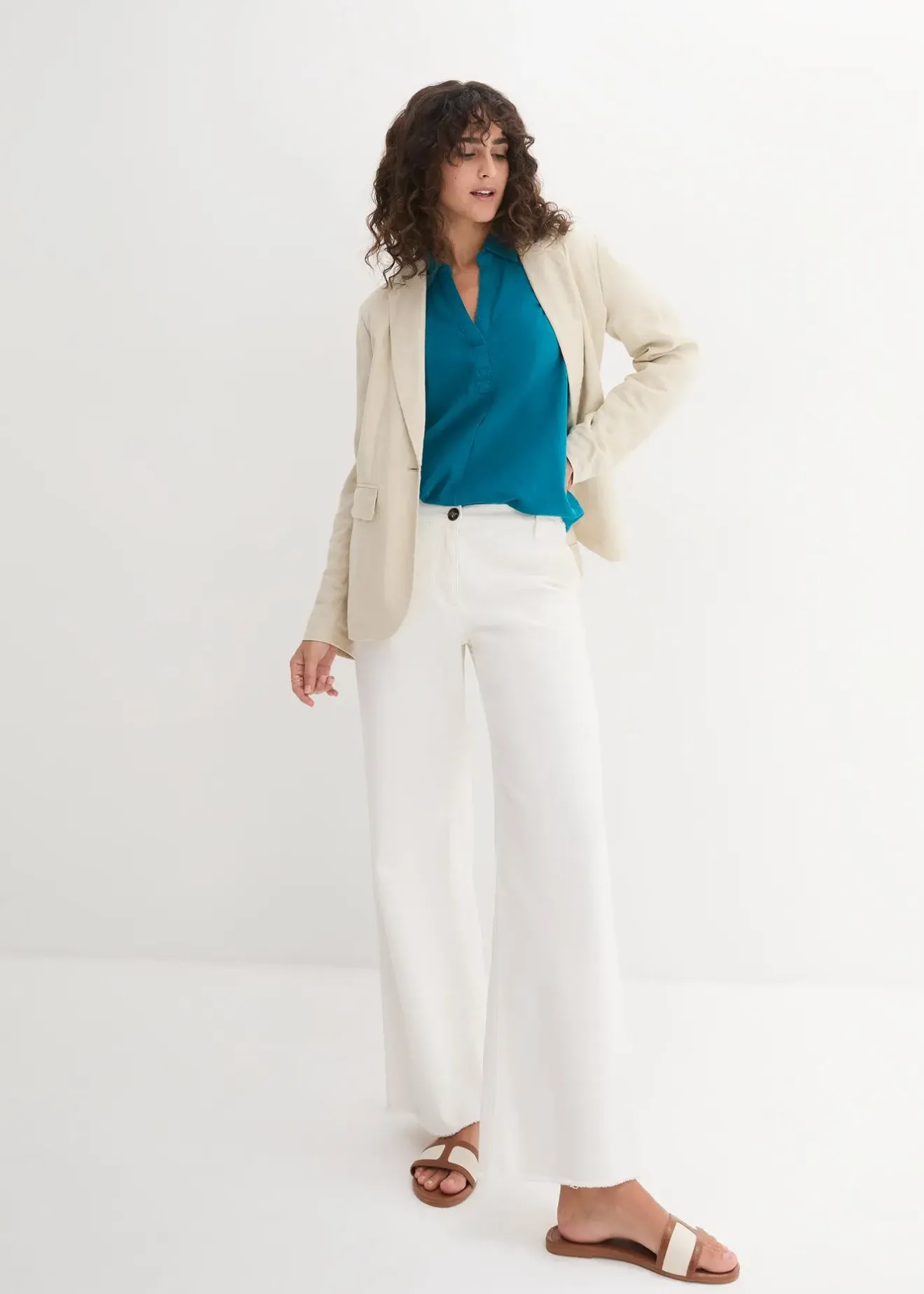 Blouse ample en lin mélangé à manches réglables
