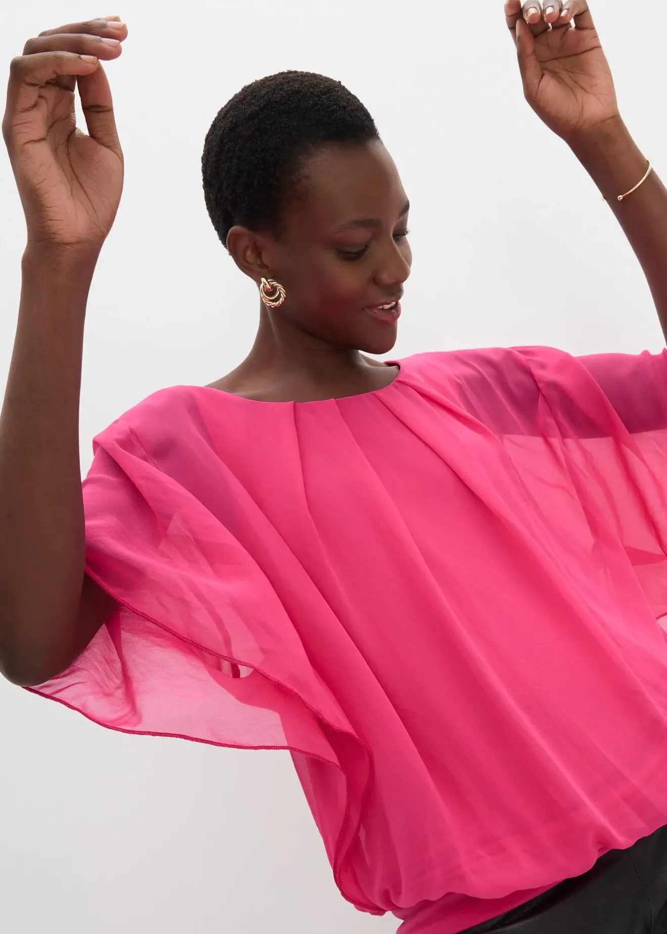 Blouse festive en mousseline avec manches chauve-souris et base élastiquée