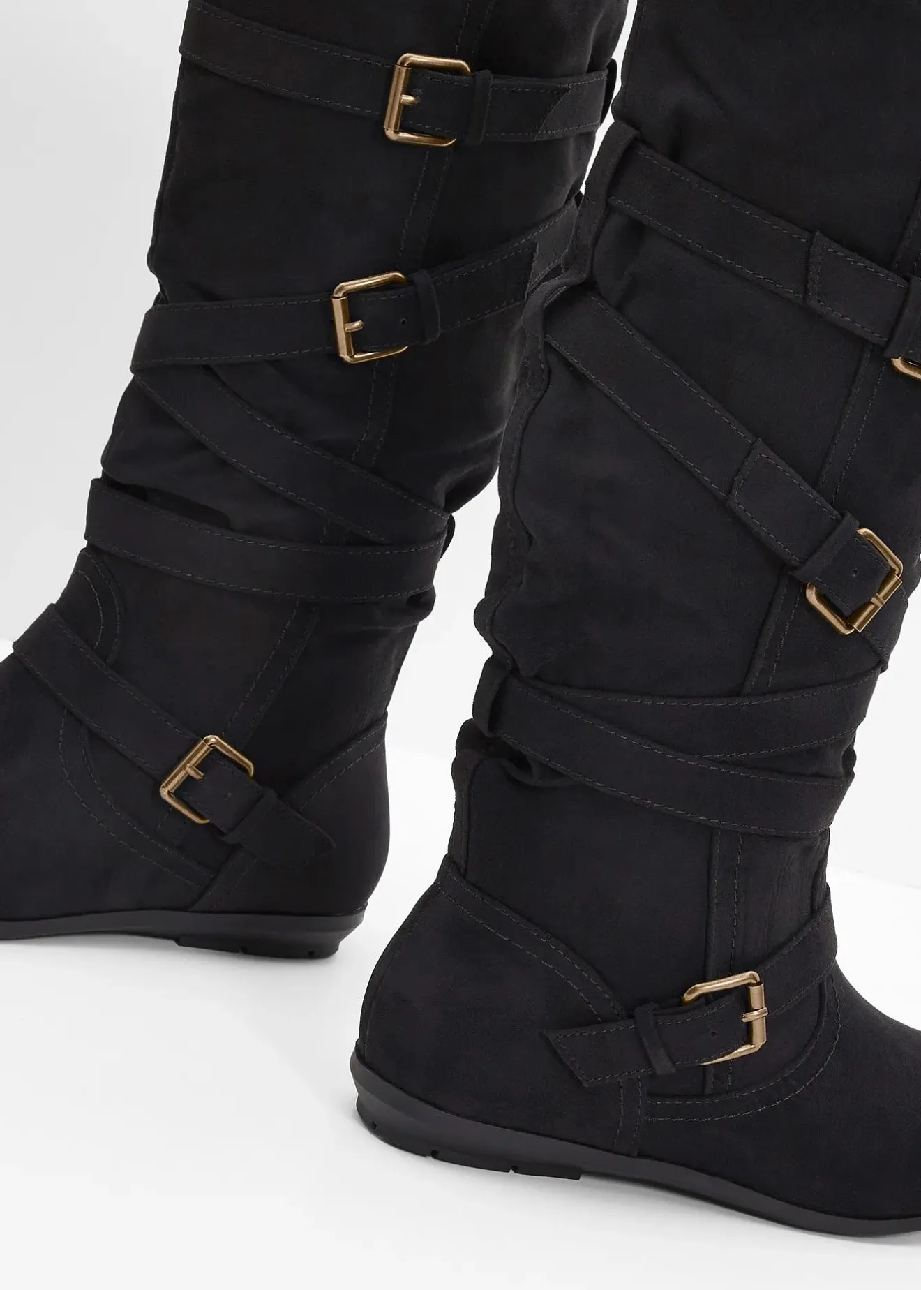 Modernes et faciles à porter, à enfiler, hauteur de tige 37 cm, tour de mollet 38 cm, brides entrelacées avec 3 boucles fantaisie.