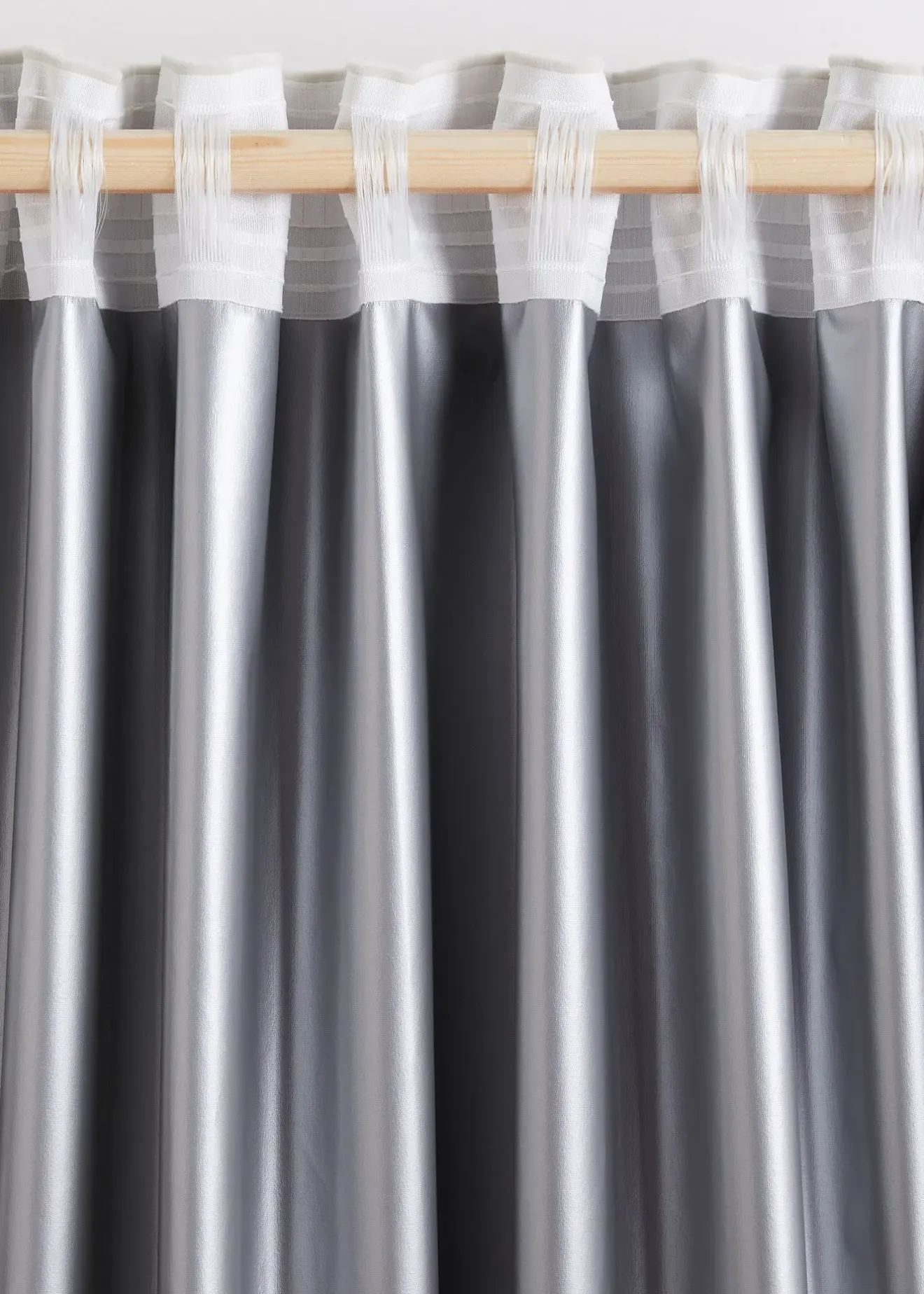 Rideau 2 en 1 fonctionnel et moderne. Uni et discret, ce rideau en tissu lourd (260 gr/m²) obscurcit les pièces en encadrant joliment vos fenêtres. Revêtement sur l’envers qui isole de la chaleur et du froid, permettant ainsi de faire des économies d’énergie. Endroit au toucher velouté.