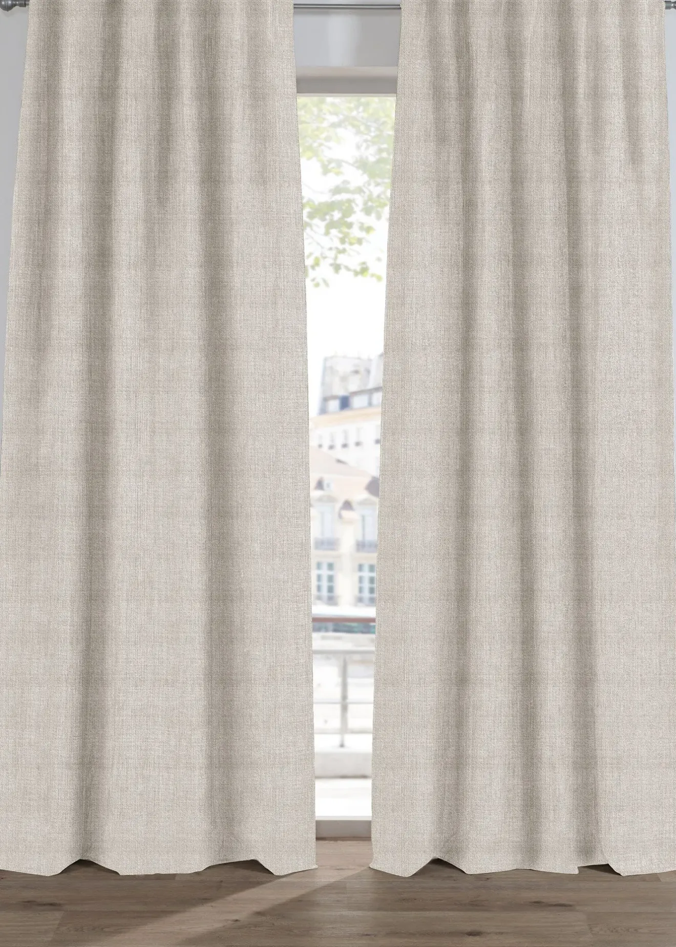 Rideau occultant finement texturé alliant fonctionnalité et style. Assombrit et insonorise pour une ambiance cosy.