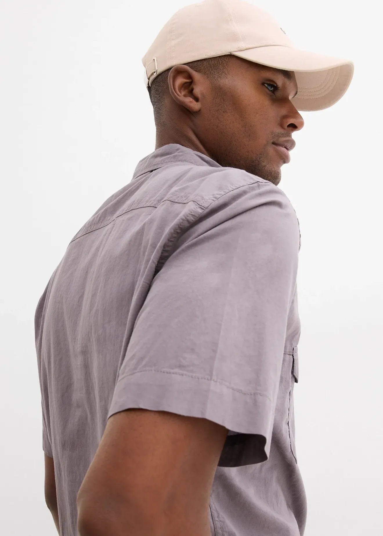 Chemise à manches courtes en matière légère et estivale avec col classique