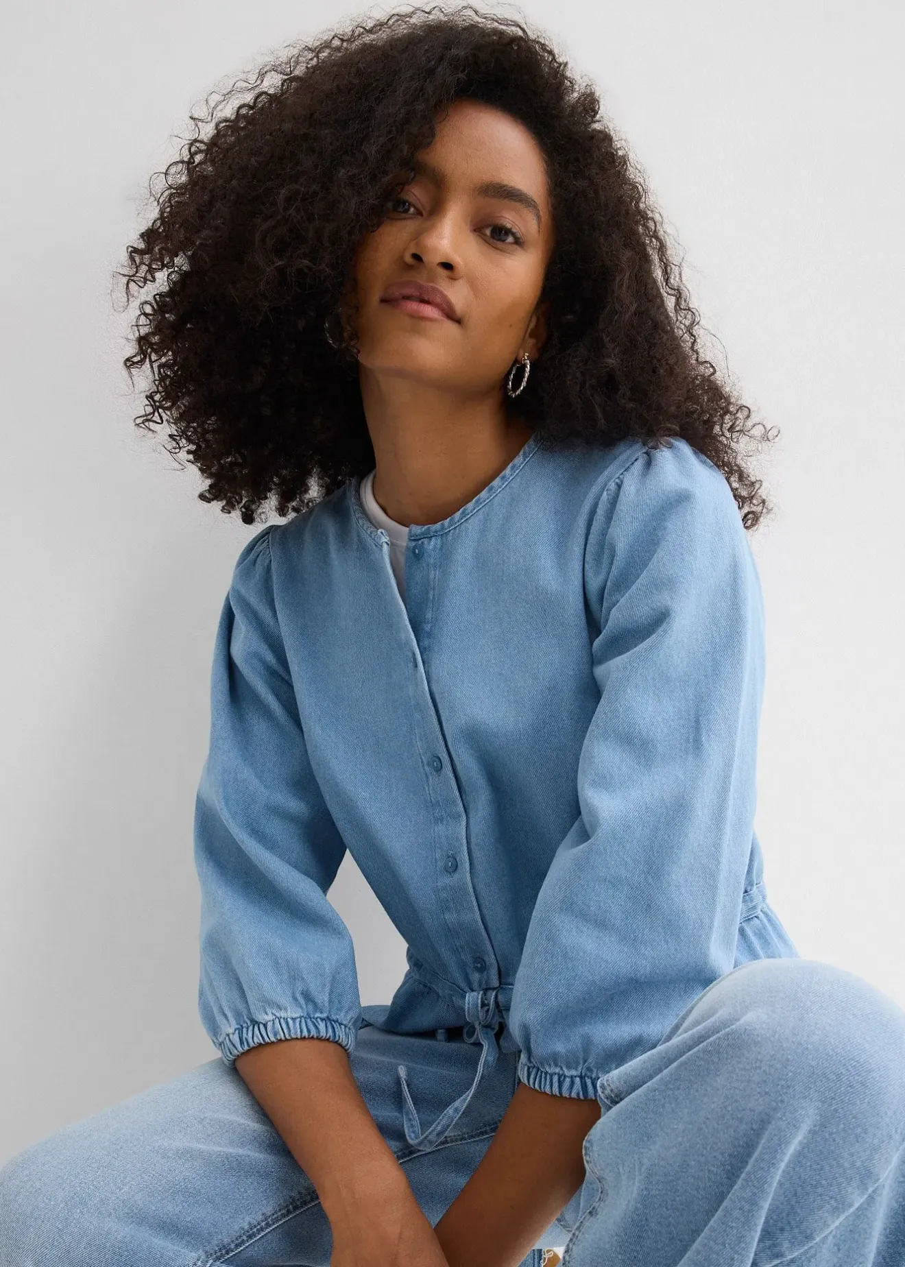 Chemisier en jean à manches bouffantes, coton