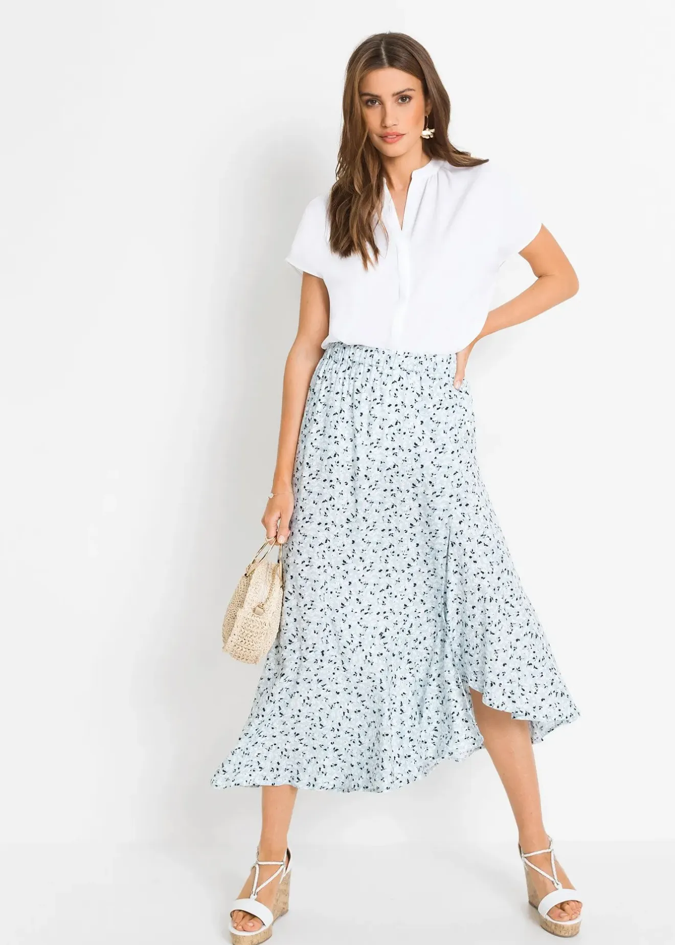 Chemisier stylé col V avec patte de boutonnage invisible