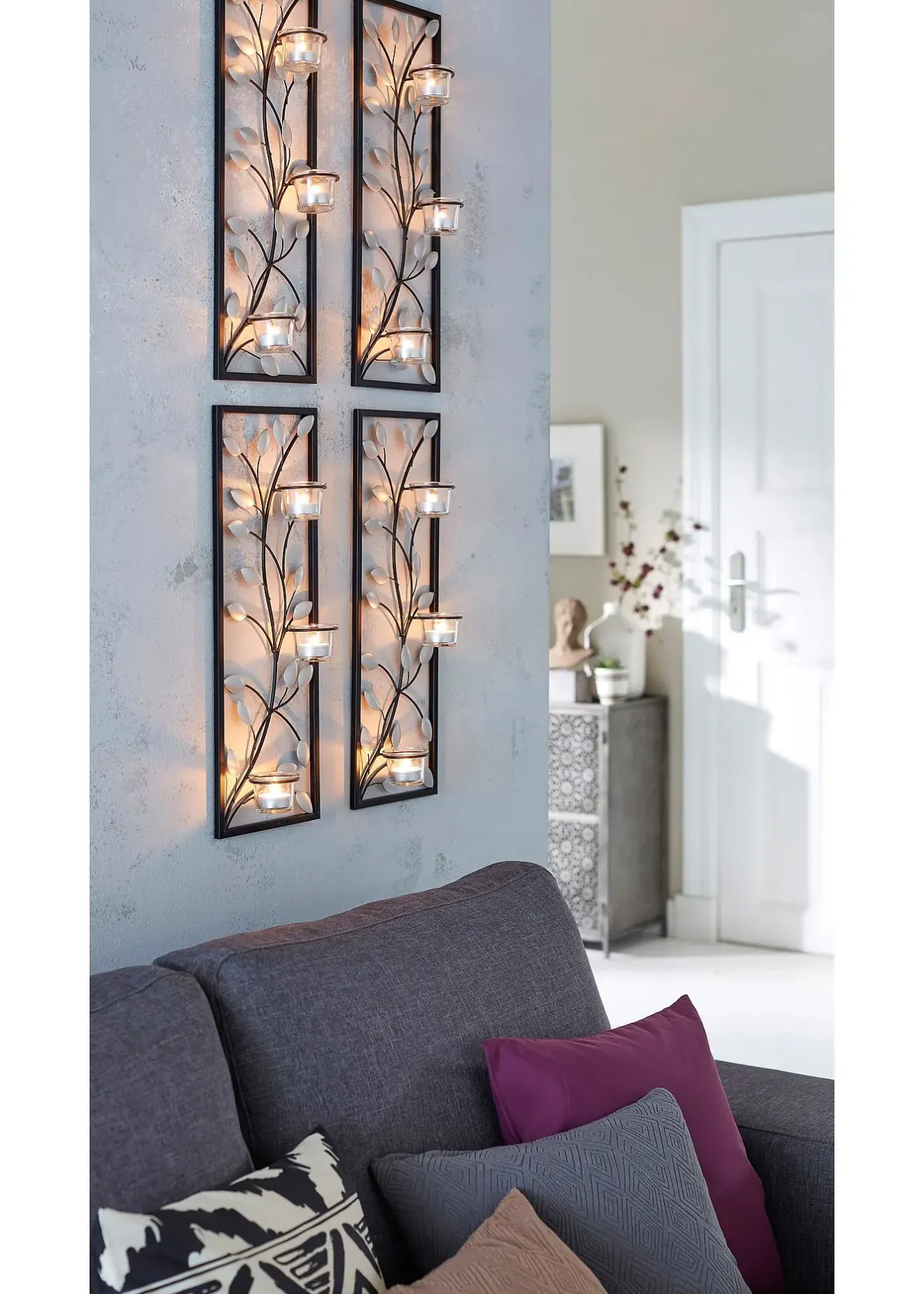 Ce magnifique bougeoir mural habille vos murs en un tour de main. Support mural élégant en métal laqué noir avec 3 photophores en verre transparent inclus (bougies non fournies). Dim. H/l/P env. 54×18,5×8 cm.