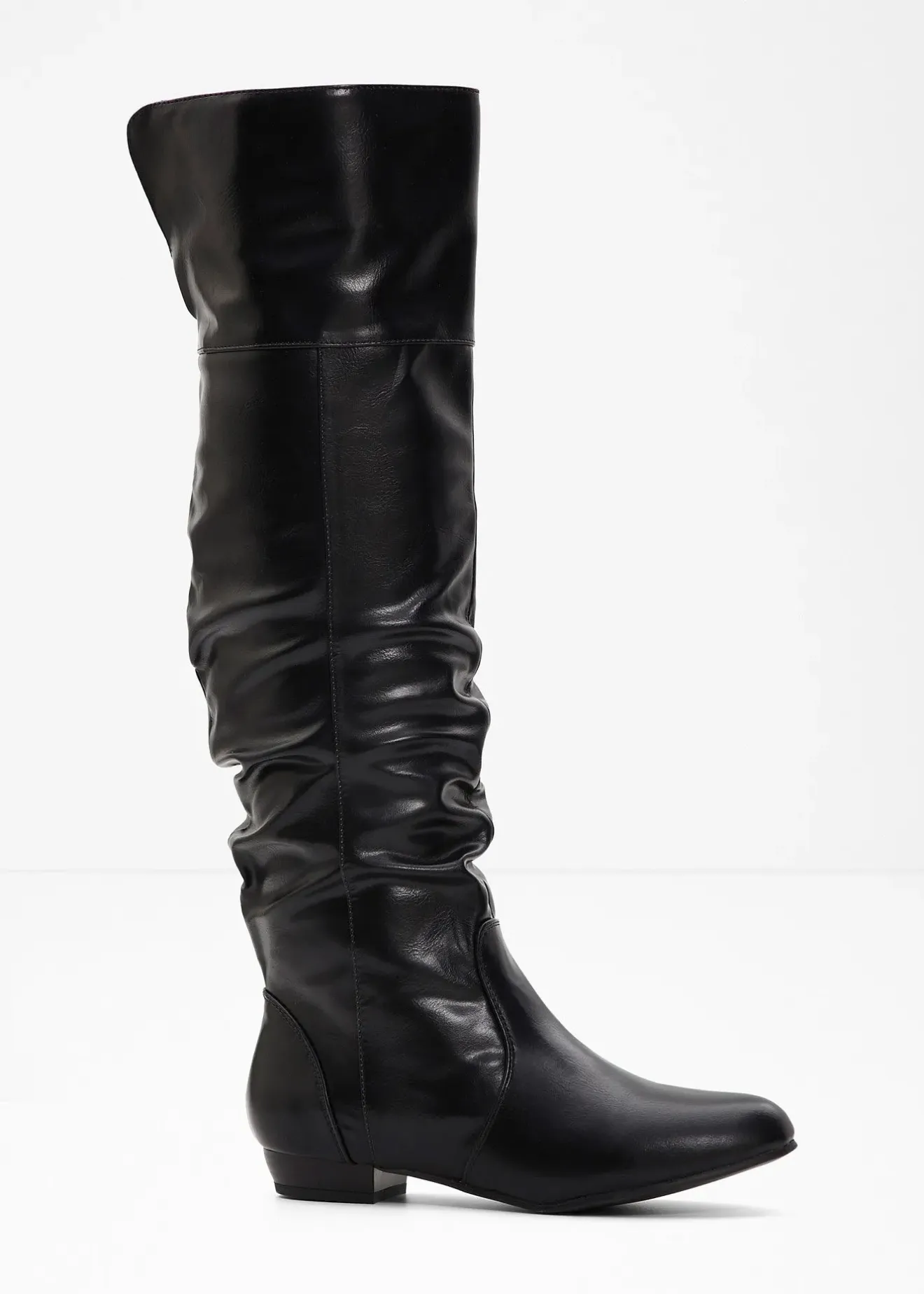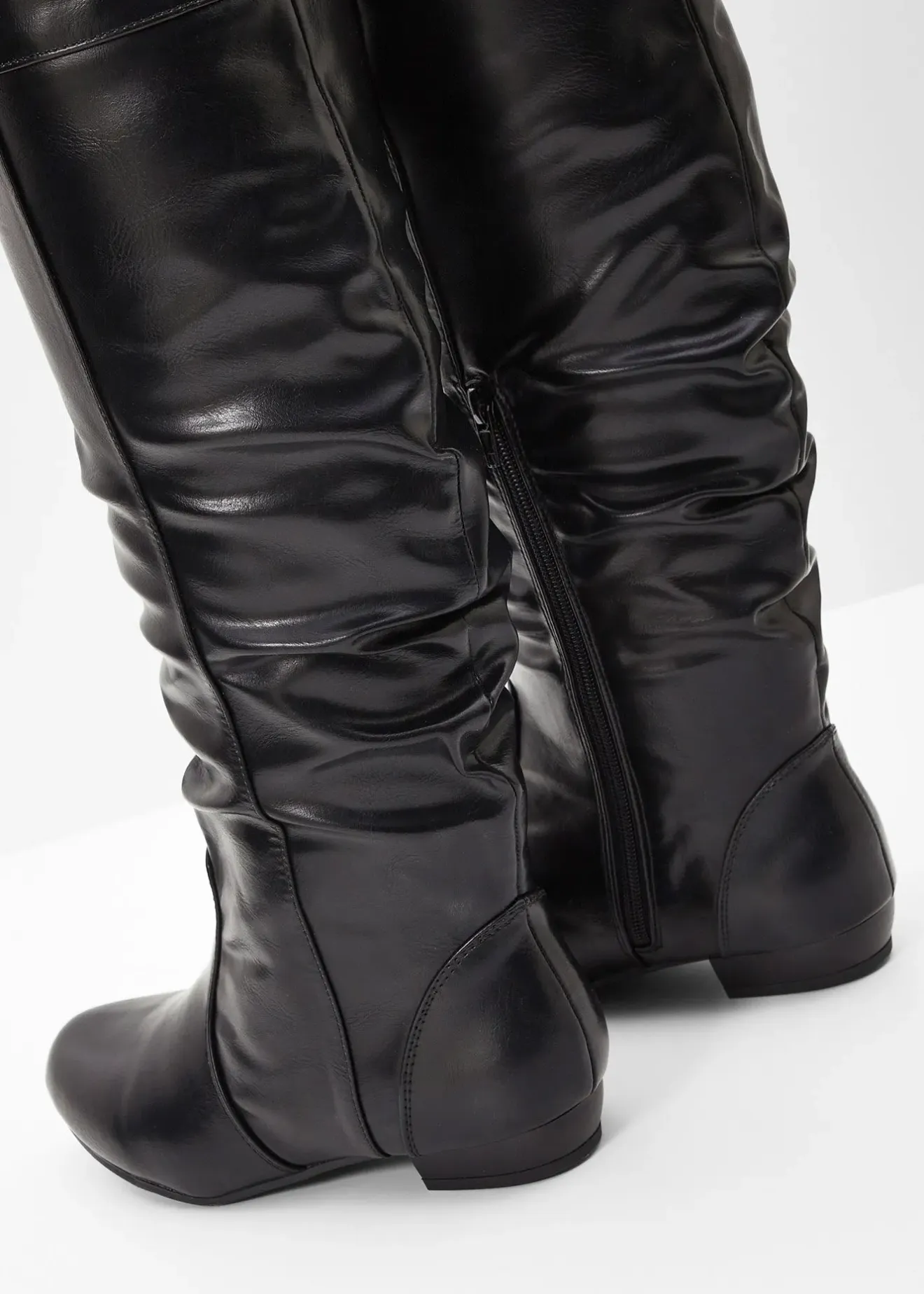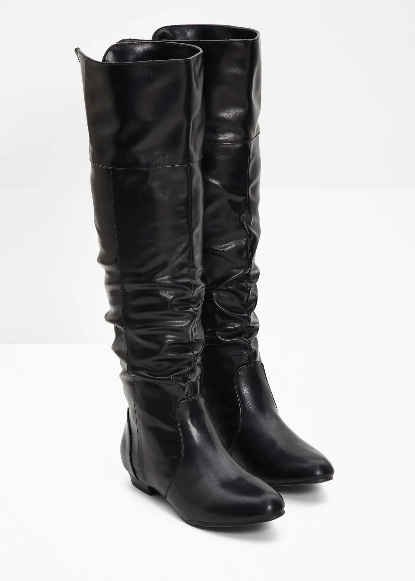 Style sobrement élégant avec tige froncée, zip intérieur, hauteur de tige 50 cm, tour de mollet 38 cm.