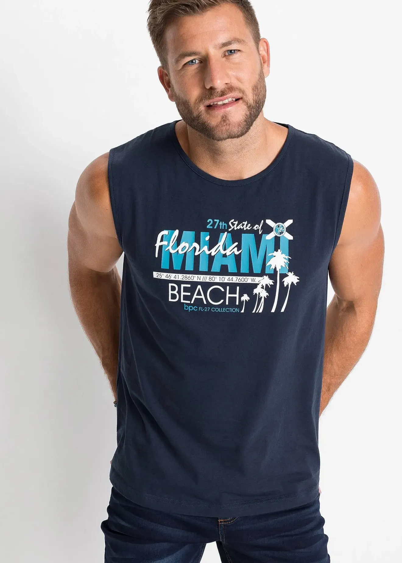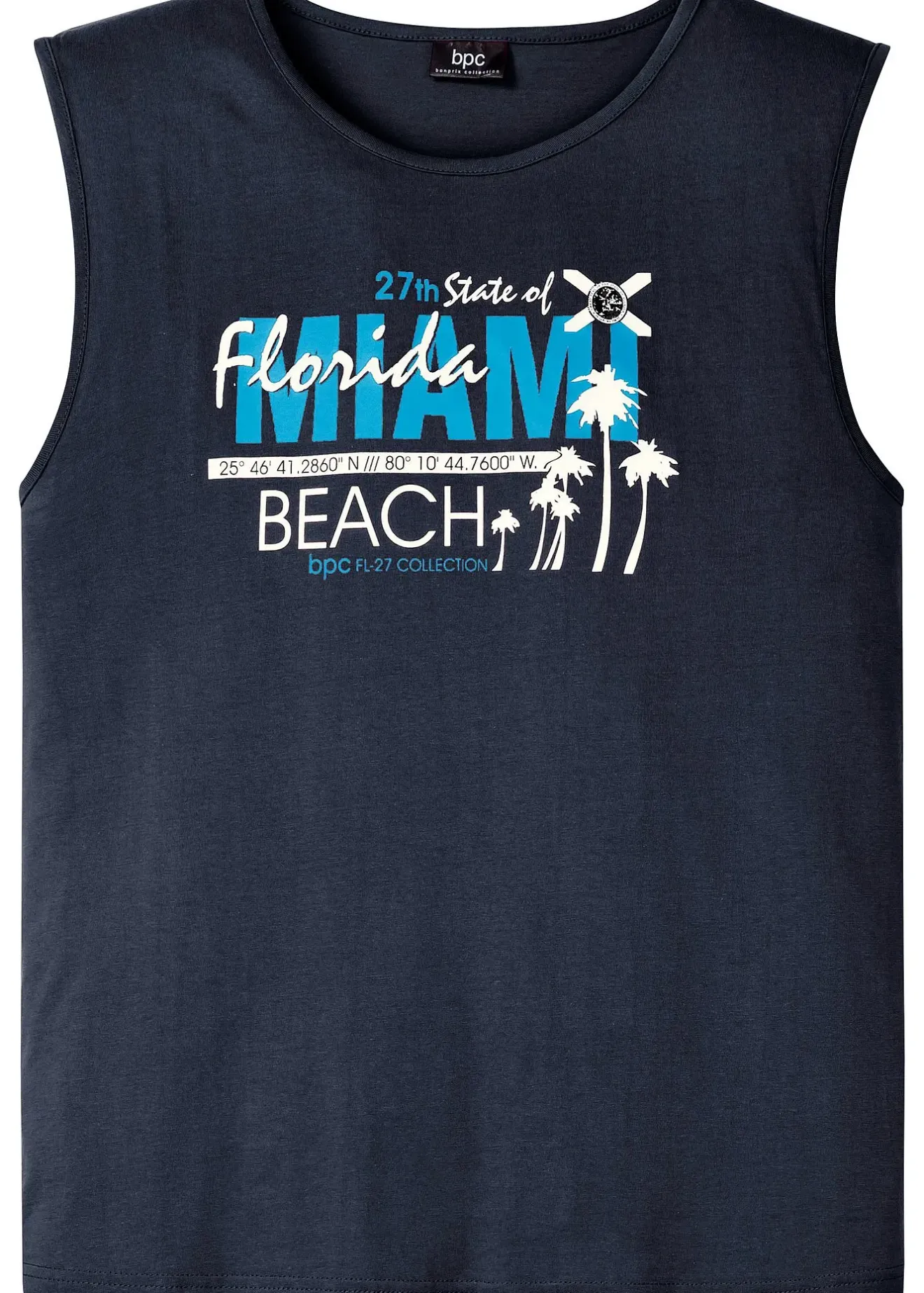 Débardeur marcel coupe spéciale ventre fort à imprimé mode et col rond.