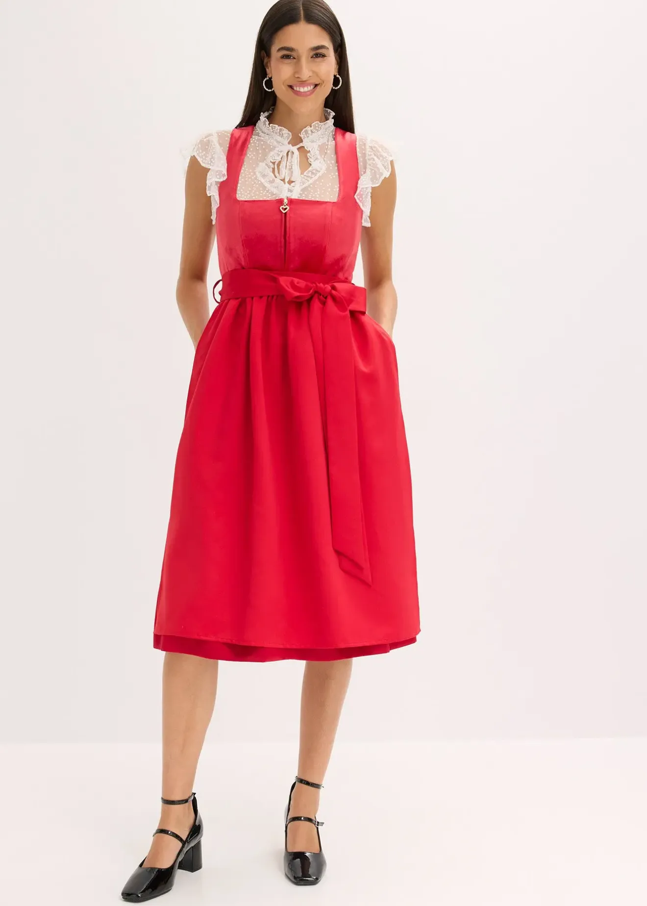 Dirndl traditionnel avec un corset en tissu velouté et un tablier aux reflets changeants. La jupe est dotée d’une doublure confortable en coton.