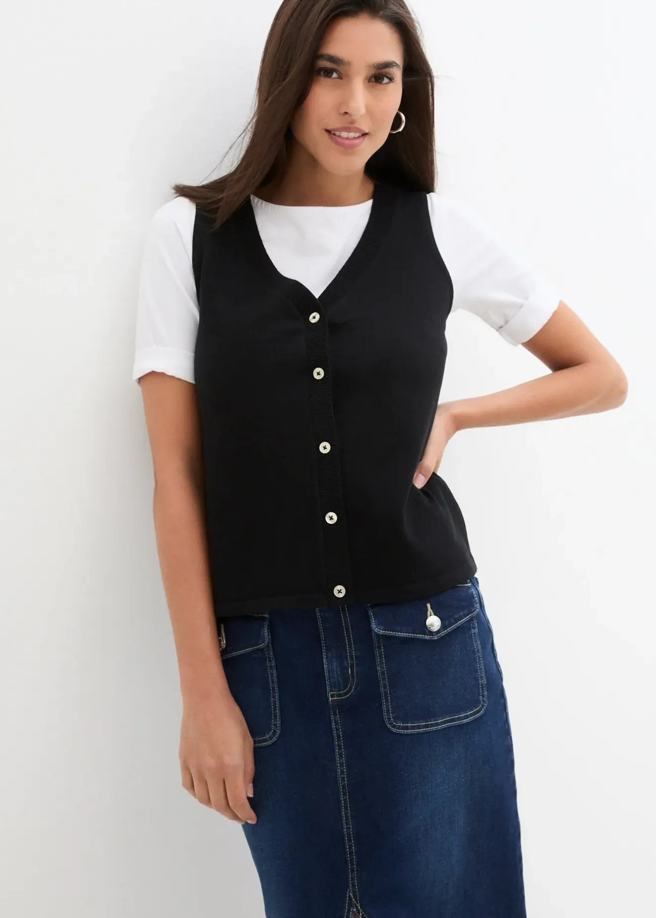 Gilet sans manches à boutons et col V