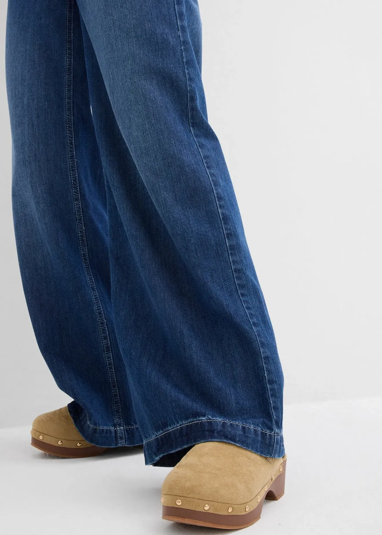Jean 5 poches taille haute en toile ultra-légère et ultra-douce. Coupe ample et large ceinture montée. Long. entrejambe env. 78,5 cm, lavage machine.