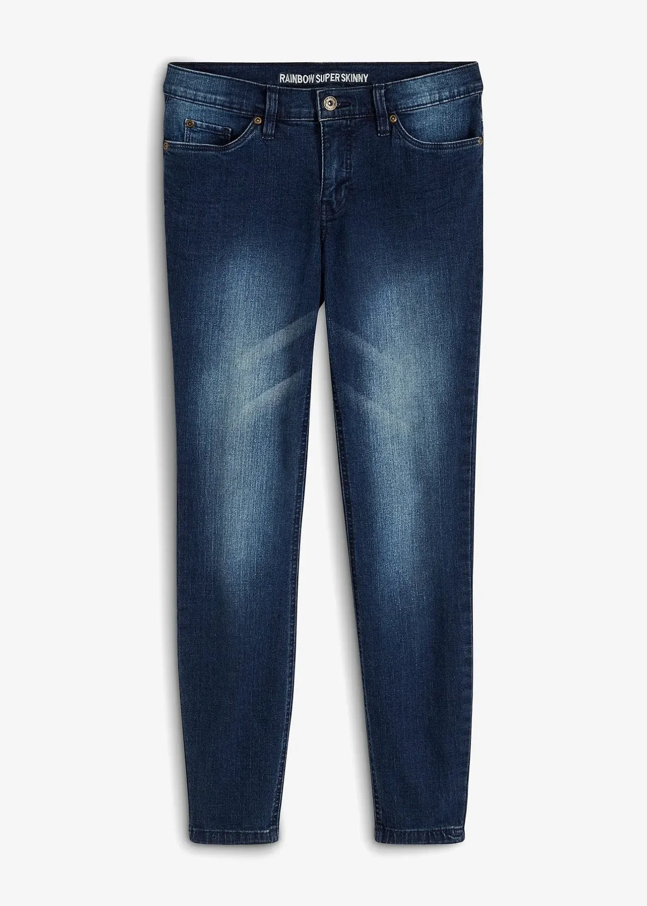 Jean skinny stylé à cinq poches avec un délavage cool et des plis permanents. Coupe 7/8 très tendance.