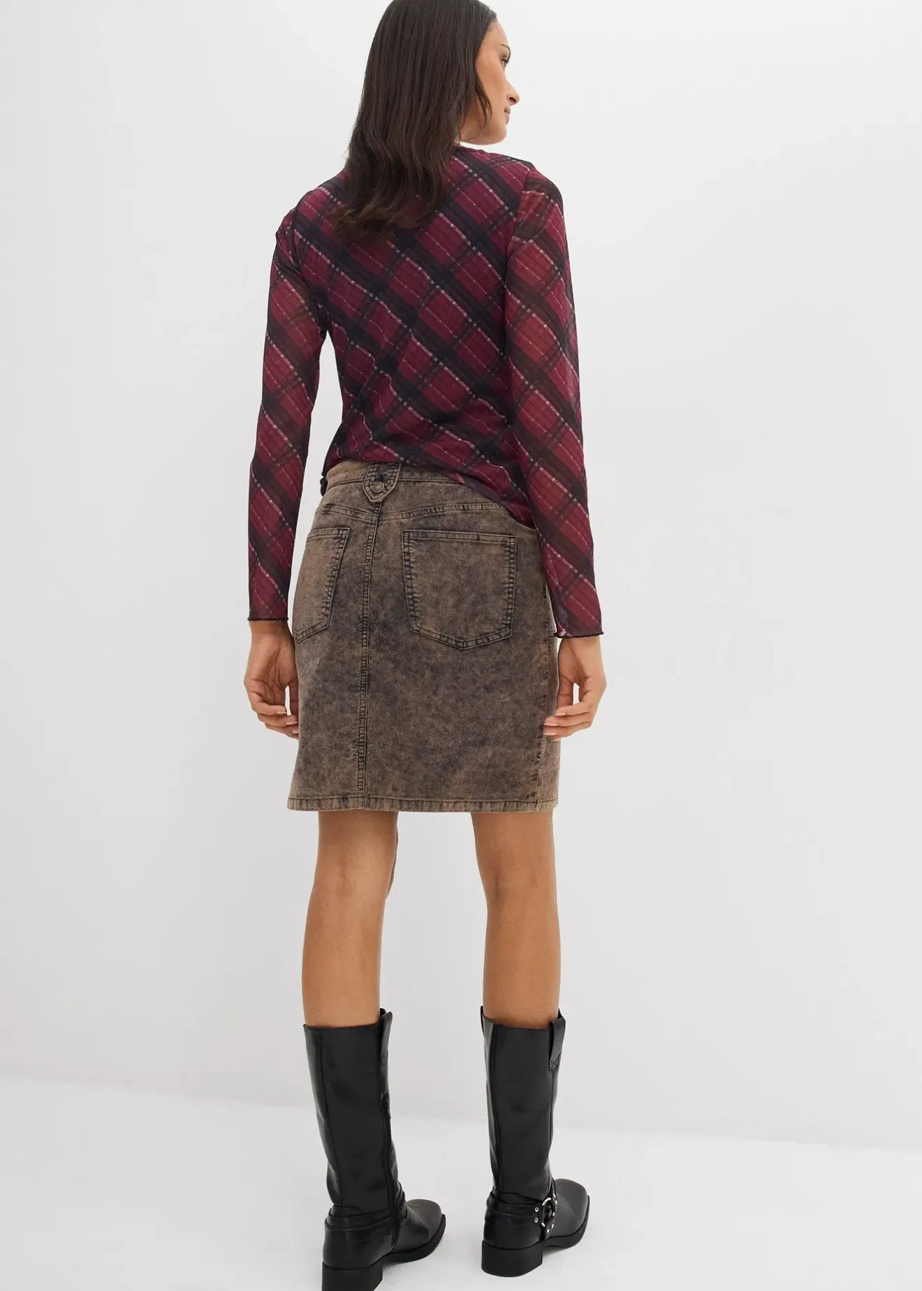 Jupe courte en velours côtelé délavé, avec poches