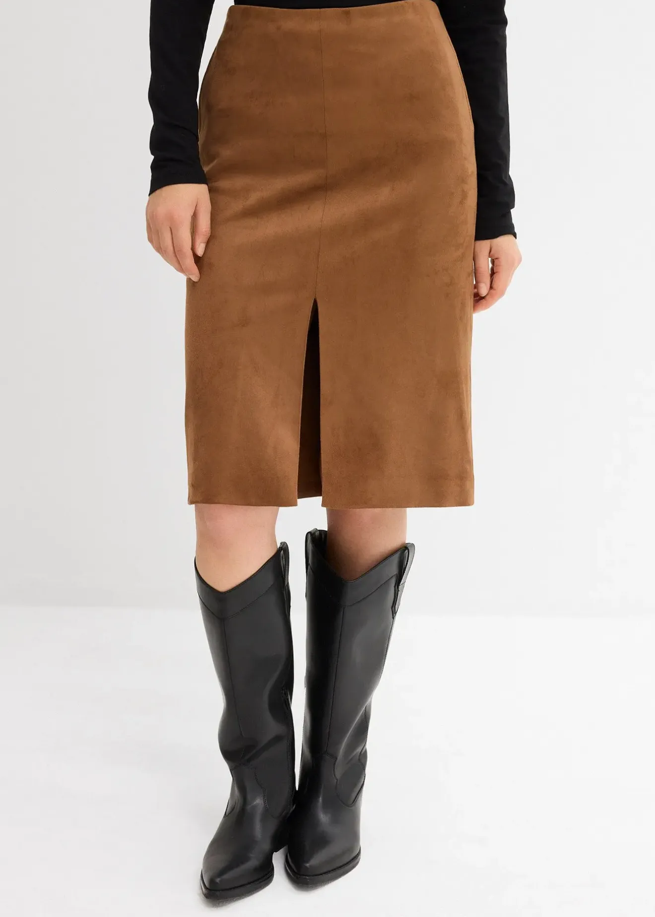 Jupe étroite longueur genou en suédine douce