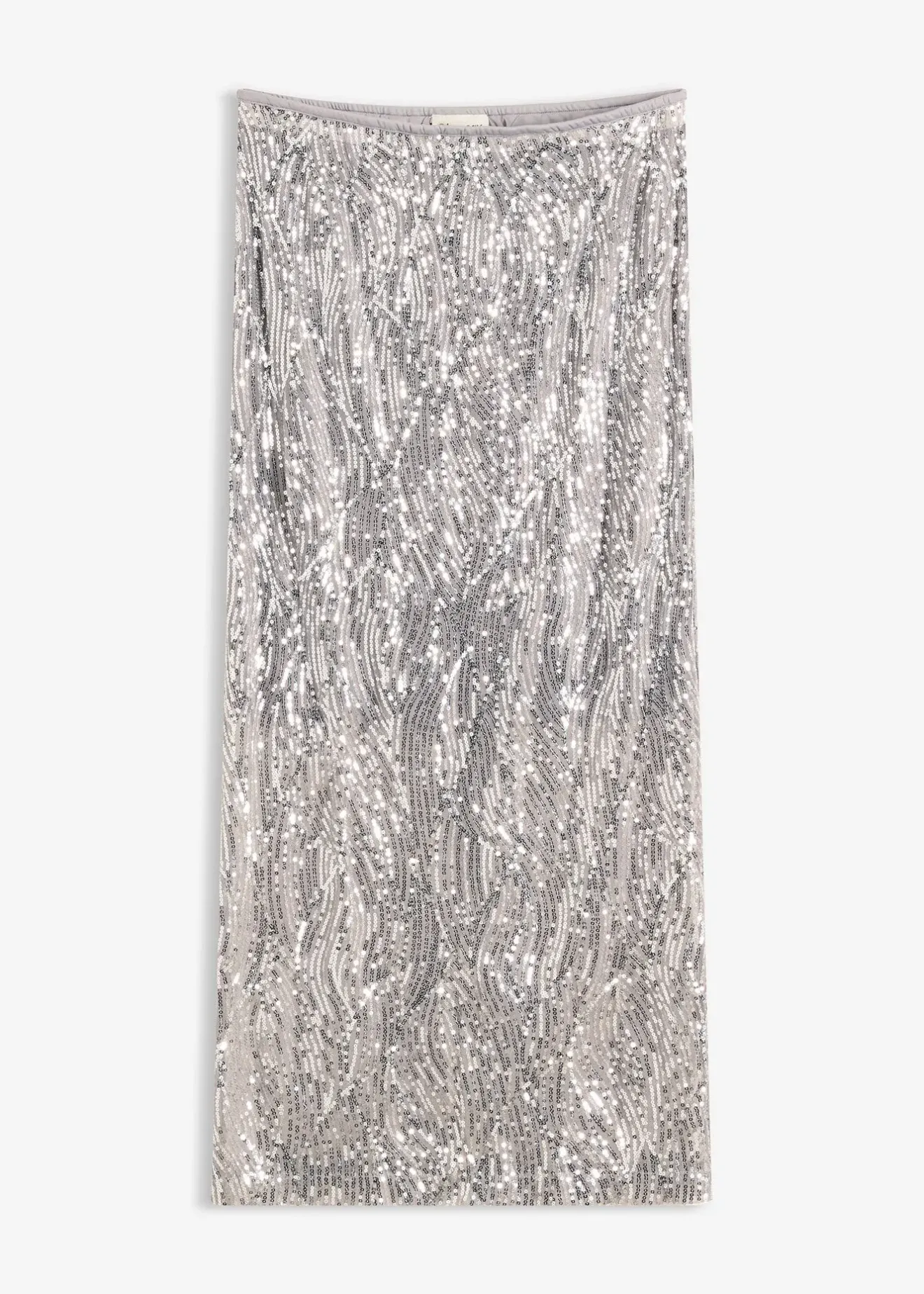 Jupe midi tendance et doublée à sequins et taille élastiquée