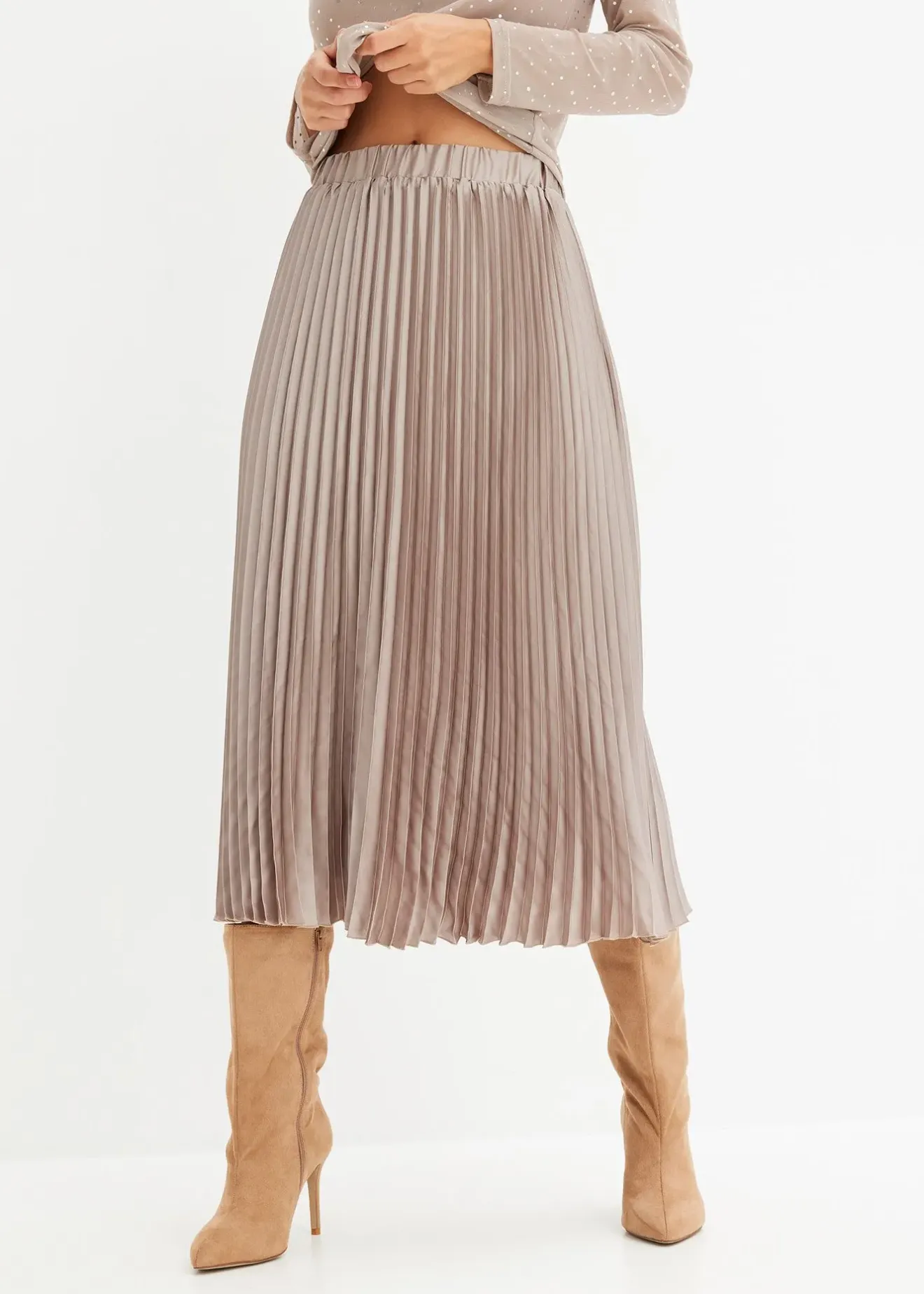 Jupe midi tendance en satin plissé