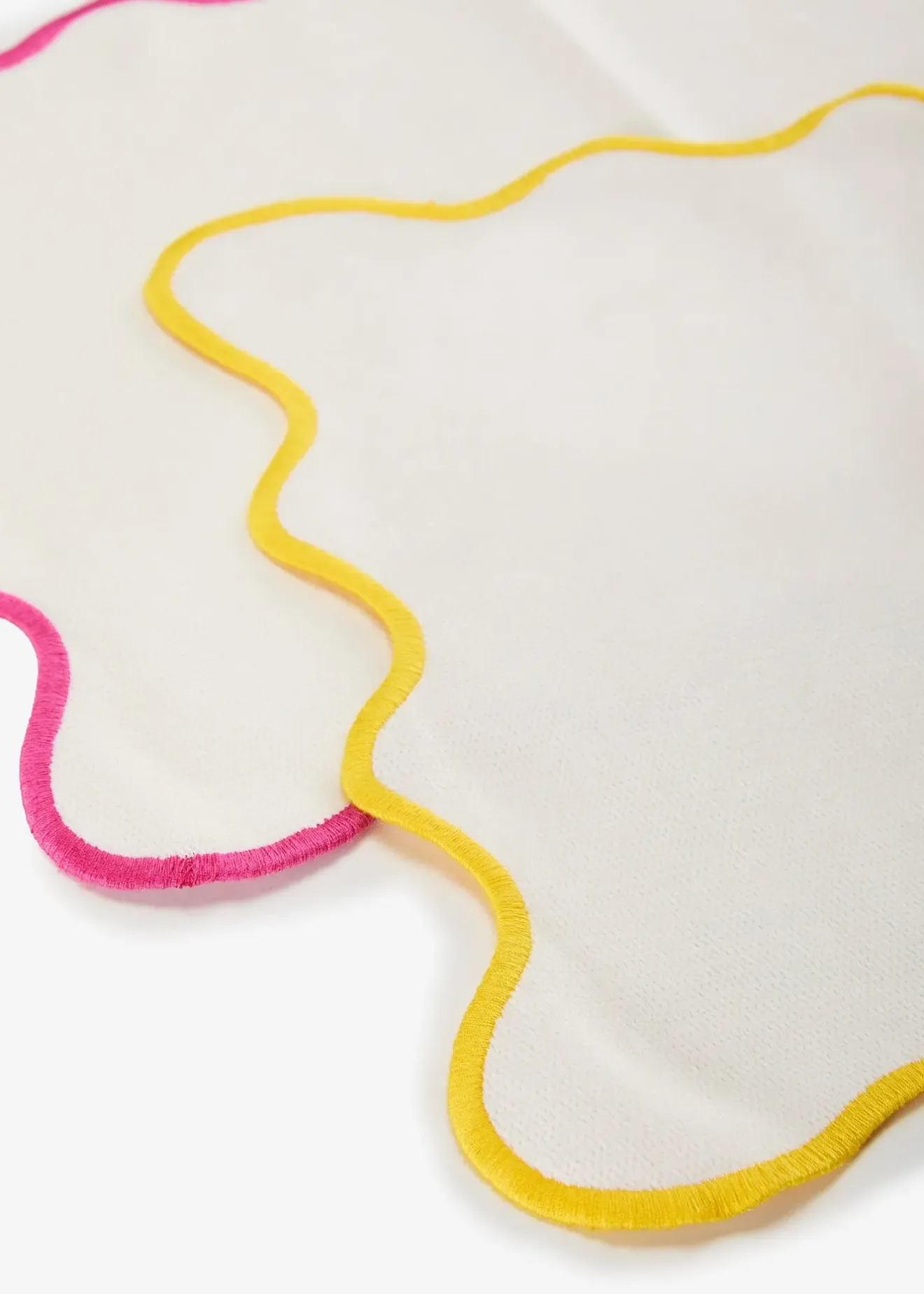 Avec ces deux sets de table colorés, votre salle à manger attire immédiatement tous les regards. Un avec bord ondulé jaune, l’autre rose. Le plus intéressant ? Il suffit de les retourner pour changer de style entre blanc pur classique ou crème discret. Apportez dès maintenant une touche de dynamisme à votre table !