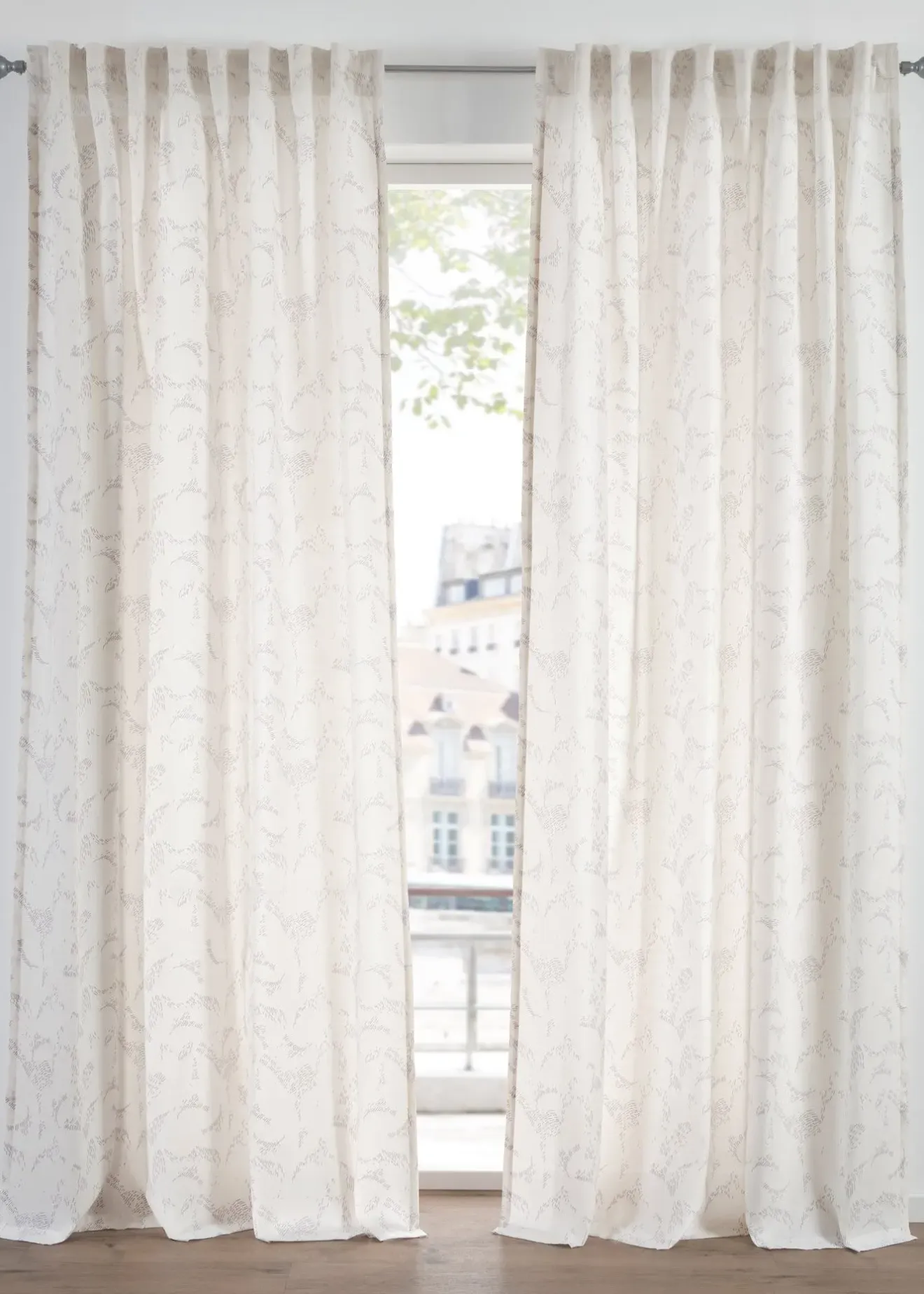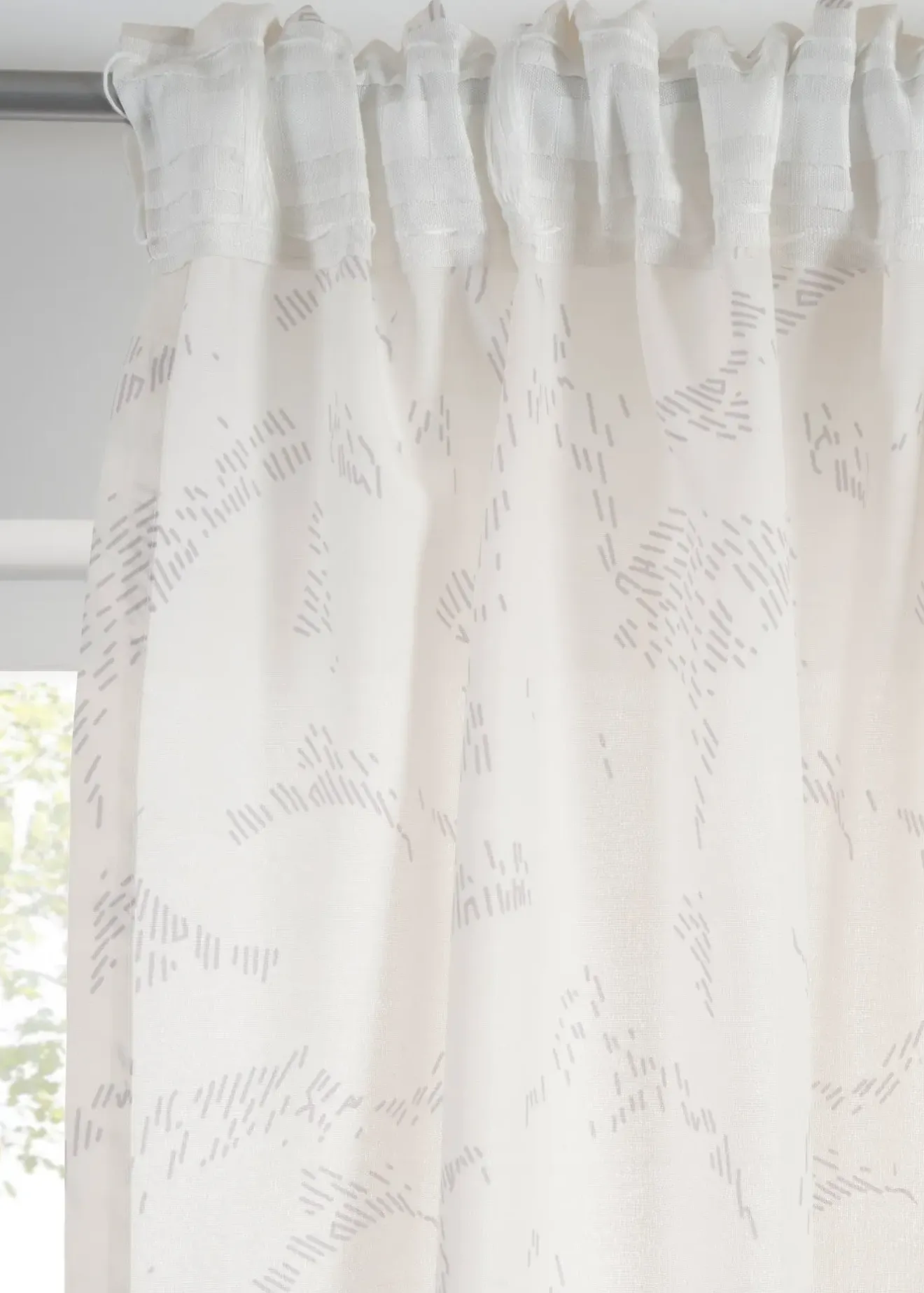 Ce voilage semi-transparent à imprimé discret, frais et moderne décore joliment vos fenêtres. Il est disponible aussi en extra long.