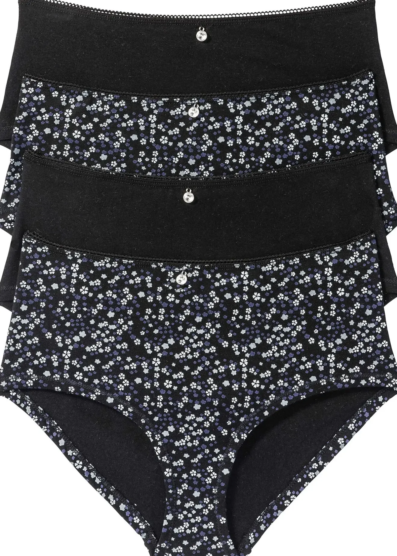 Lot de 4 culottes Maxi en coton extensible ornés d’une petite pierre brillante. Gousset en coton.
