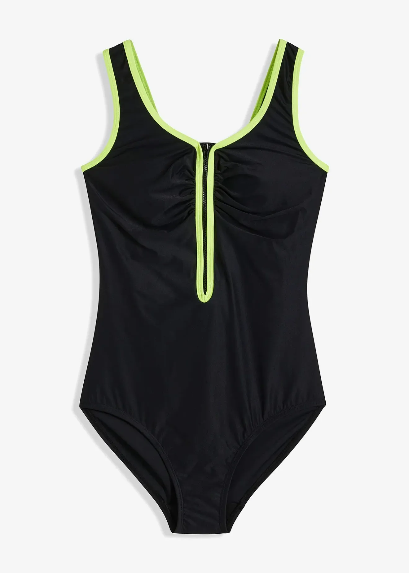 Dans la sélection de Maite Kelly : ce maillot 1 pièce de bpc est la tenue de plage parfaite pour vos prochaines vacances. Il est confectionné dans une matière gainante amincissante qui sublime la silhouette. Ce modèle est doté d’une doublure poitrine et d’une bande élastique sous poitrine. Des coques souples intégrées mettent en valeur le décolleté. Ce maillot 1 pièce est doté d’un zip sur le devant et d’une doublure modelante, il est souligné d’un passepoil de coloris contrastant sur les bretelles et le décolleté.