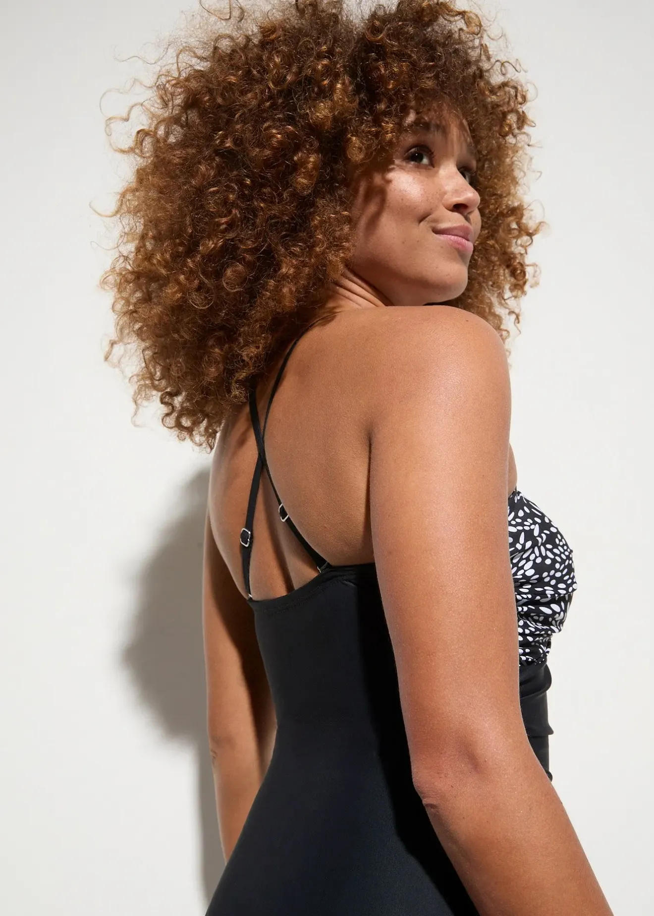 Composé de matière gainante à effet amincissant, le maillot 1 pièce bpc selection affine la silhouette féminine. Sublimant le décolleté, il dispose de coques souples intégrées, d’une doublure et d’une bande élastique sous poitrine. Fines, réglables et amovibles, ses bretelles permettent de le transformer en bustier.Agrémenté de légères fronces sur le devant, le maillot de bain 1 pièce offre une impression de mouvement. Parfait pour l’été, il combine féminité, confort et élégance. Attirant les regards, il se complète de lunettes de soleil et d’une capeline en paille.