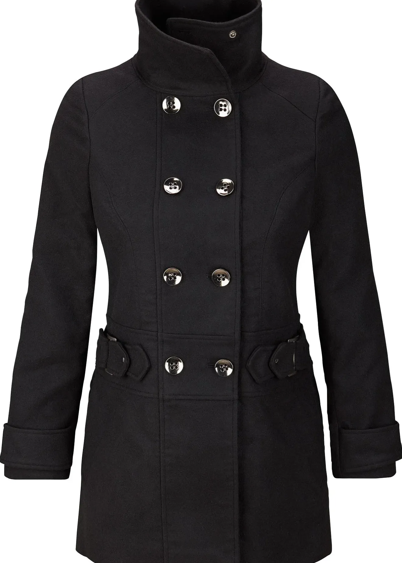 Manteau court mode avec col montant et double boutonnage, petite stature