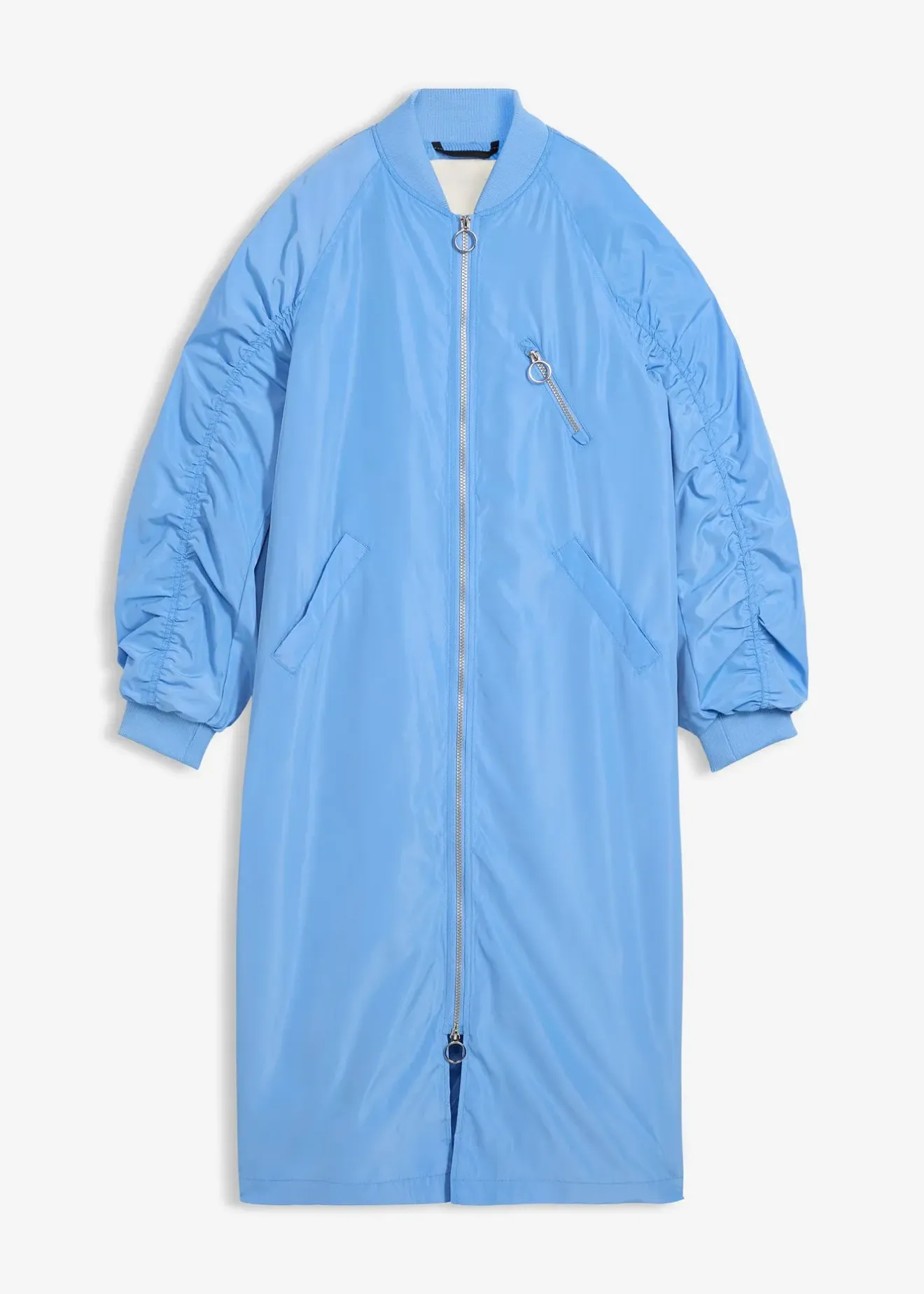 Manteau moderne et décontracté à manches froncées, finitions bord-côtes et poches à rabat devant