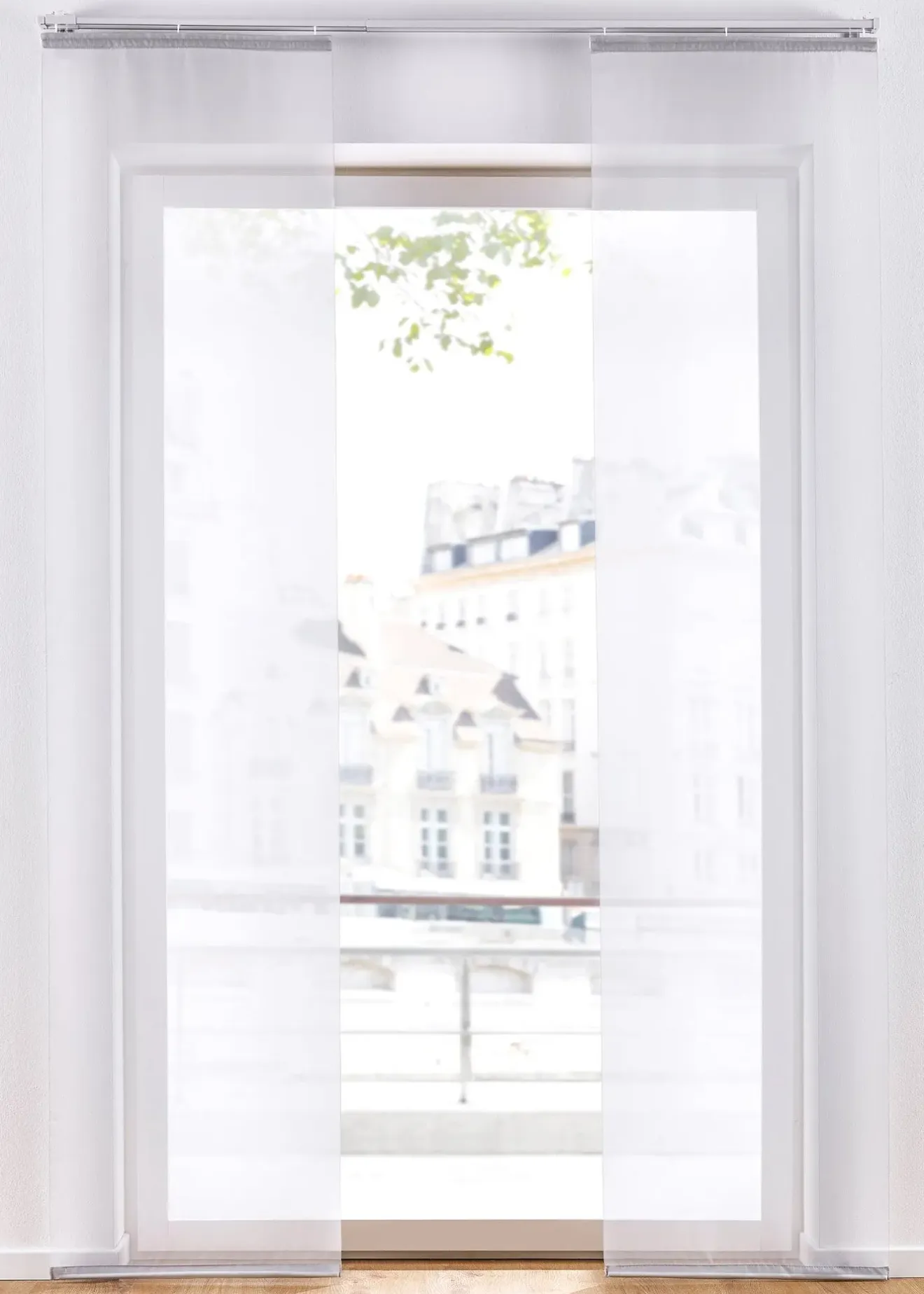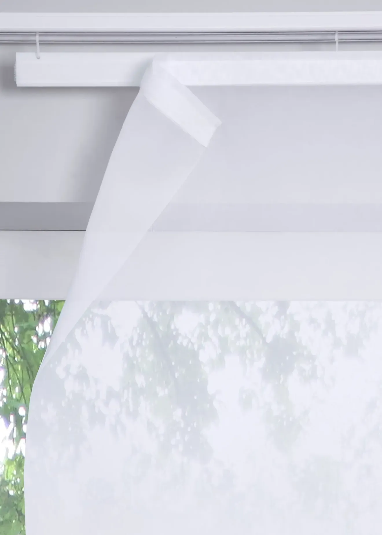 Voilage coulissant discret et transparent en voile léger et aérien. Accessoires de montage fournis pour l’accrocher au rail. Disponible en différentes tailles.