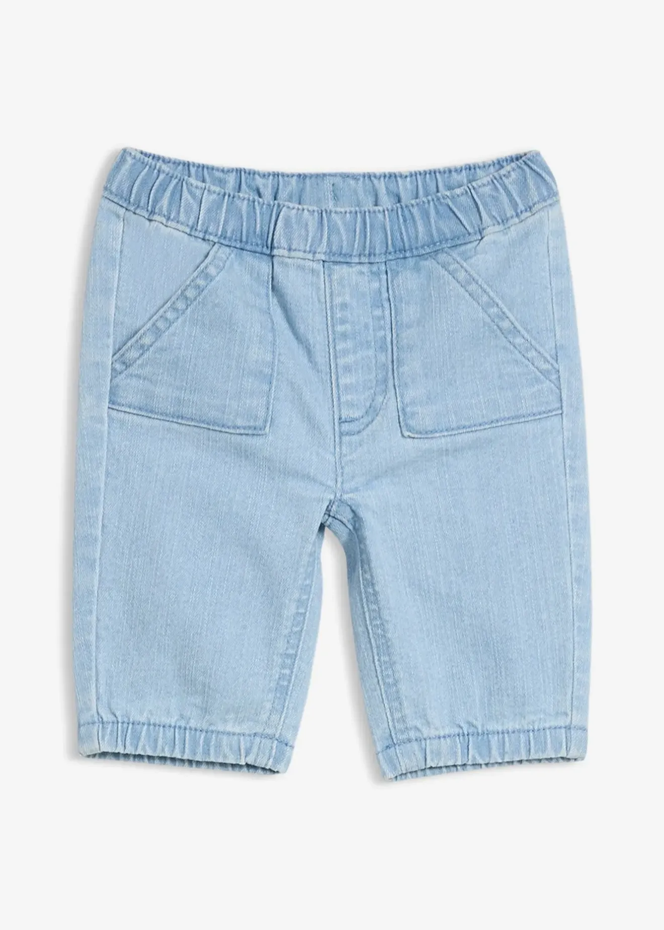 Pantalon à taille extensible, fausse braguette et poches kangourou plaquées.
