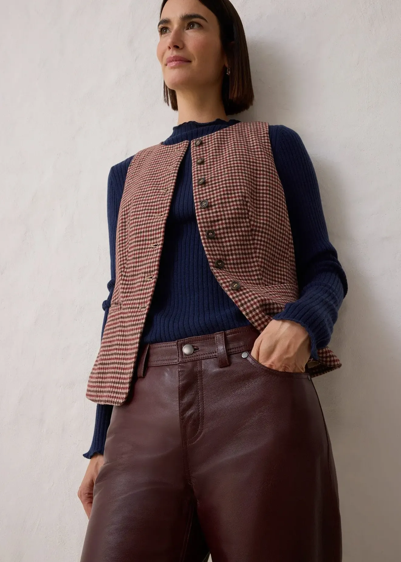 Pantalon droit 5 poches en cuir souple
