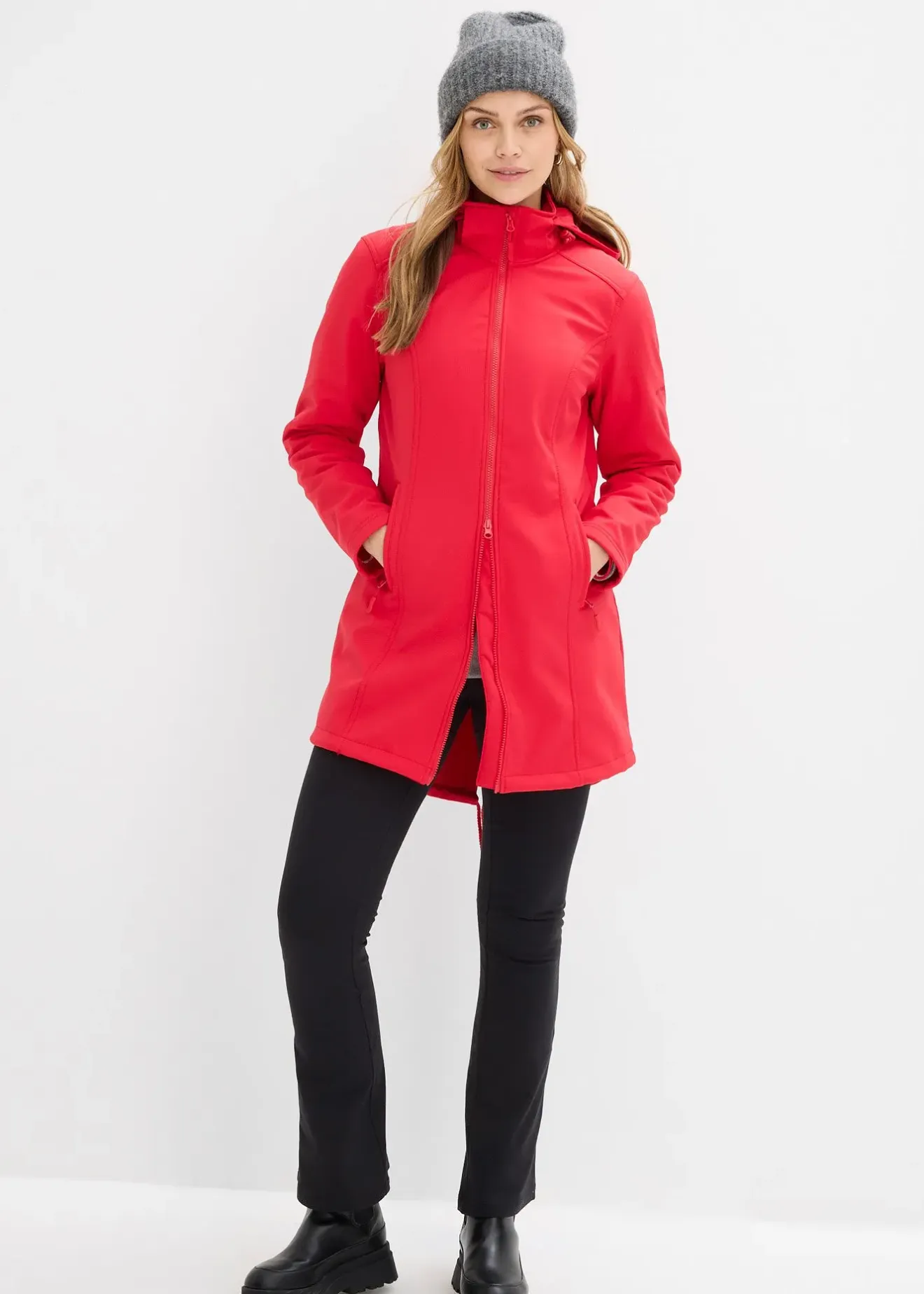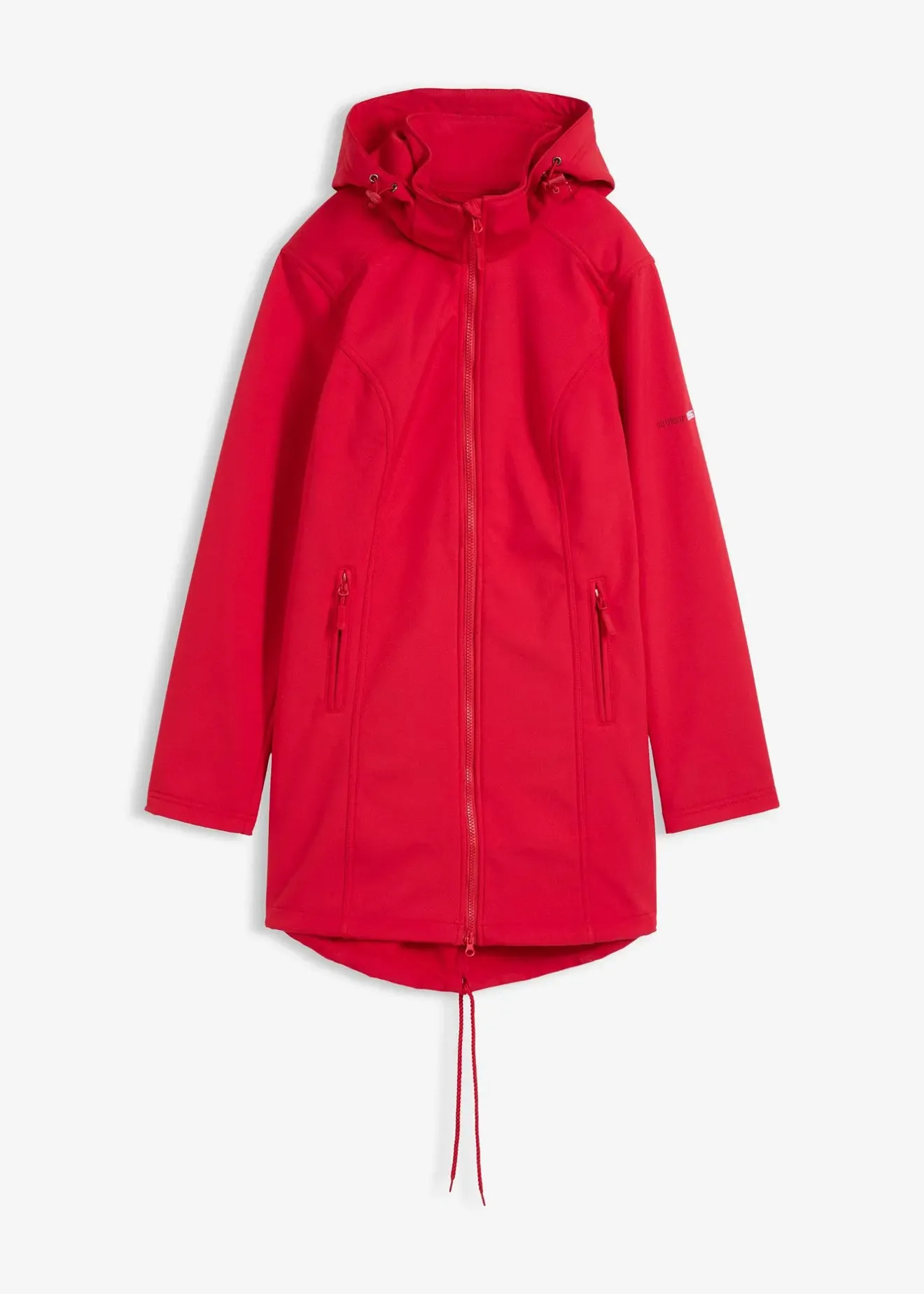 Près du corps, base arrondie avec cordon coulissé, capuche amovible, cordon coulissé à la taille, fermeture zippée double sens, intérieur gratté chaud, long. env. 90 cm.
