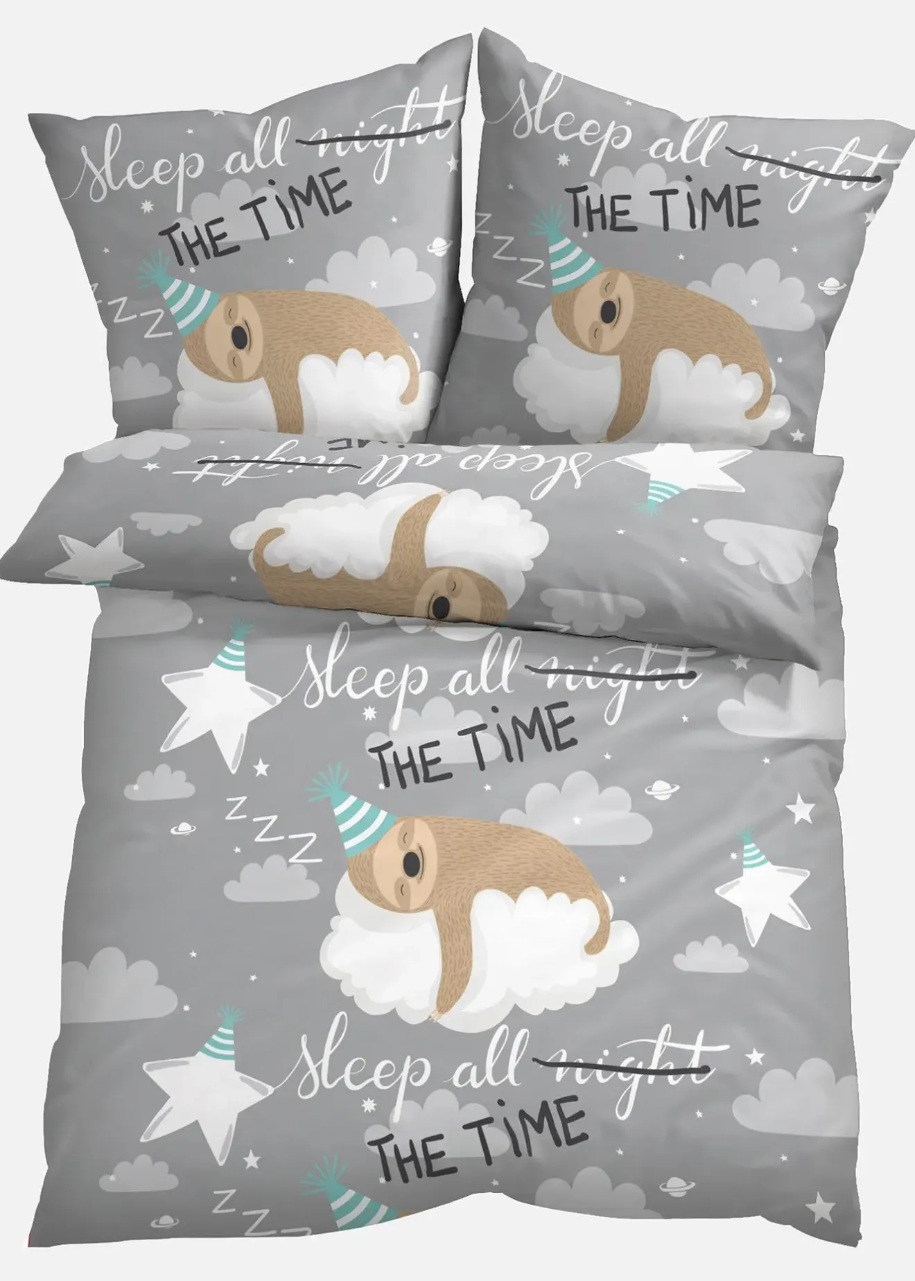 Un indispensable pour les petits paresseux : parure de lit avec imprimé paresseux et inscription.