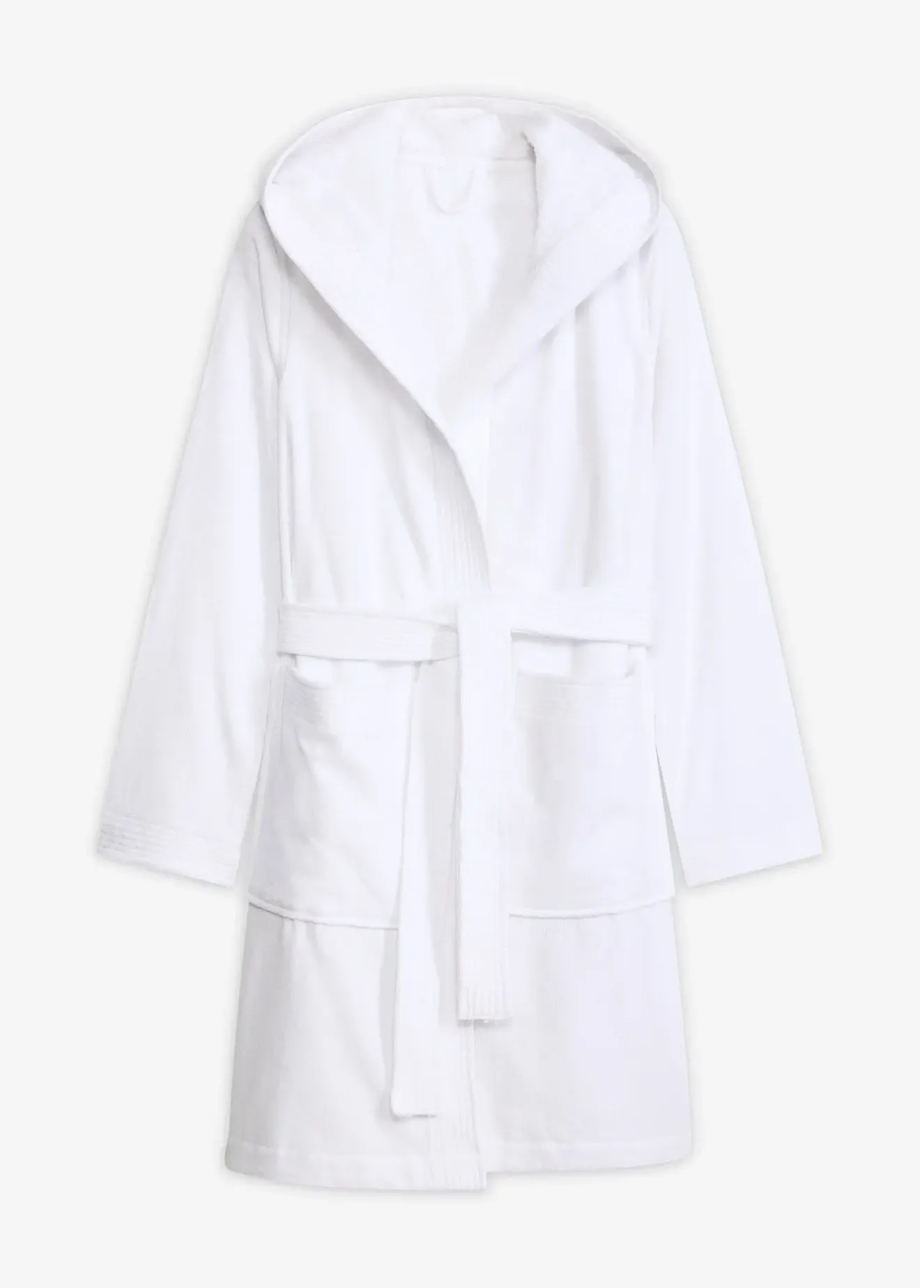 Peignoir à capuche, ceinture à nouer et poches en éponge