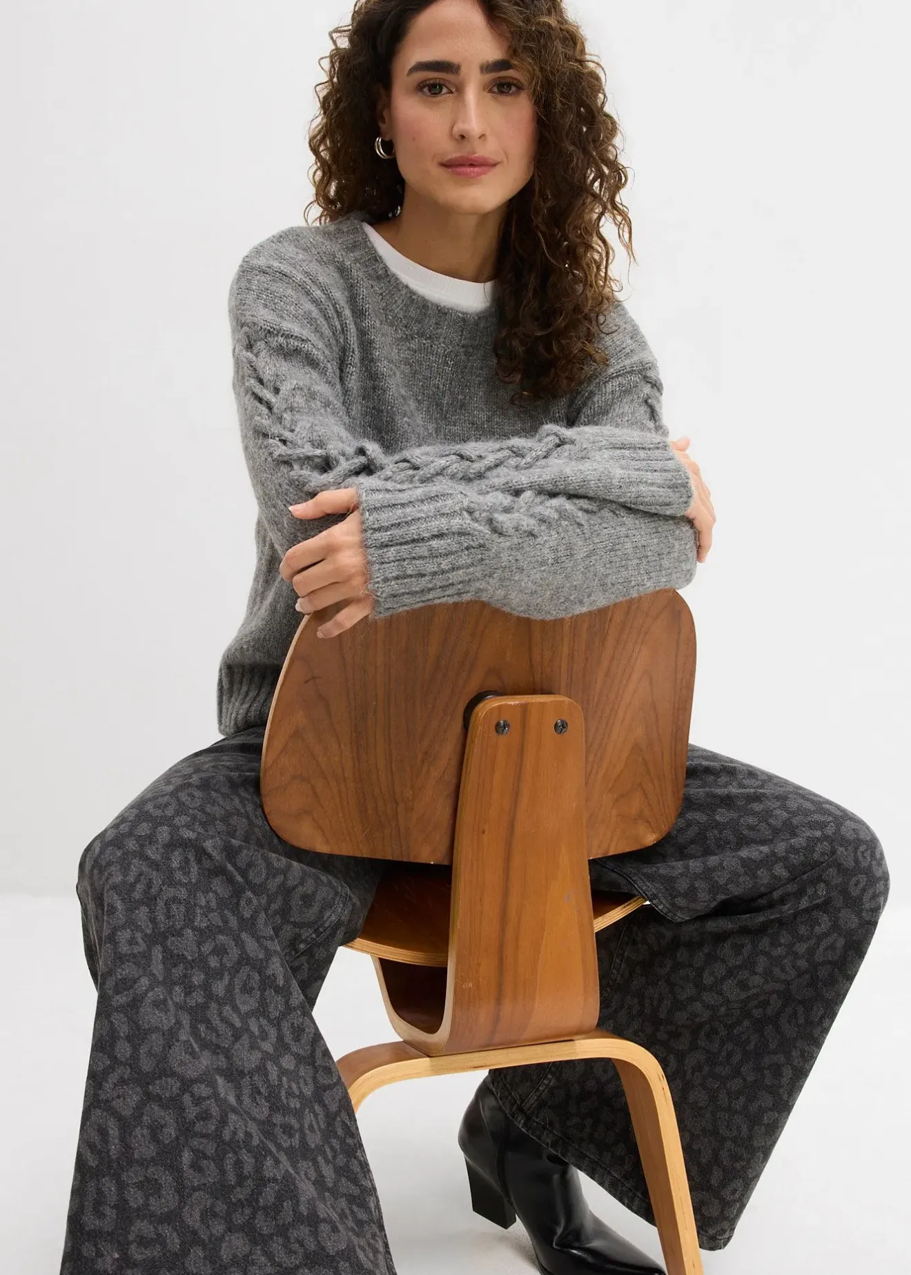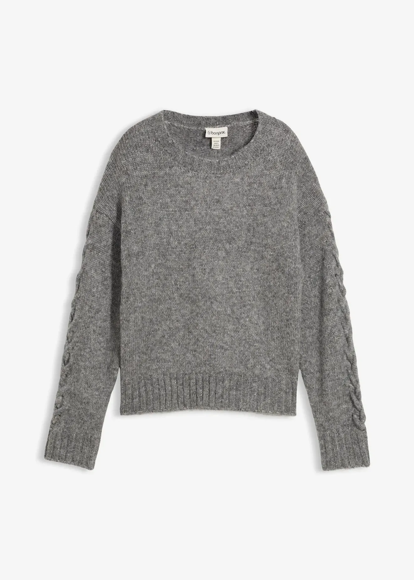 Pull boxy tendance à col rond et motif tressé sur les manches