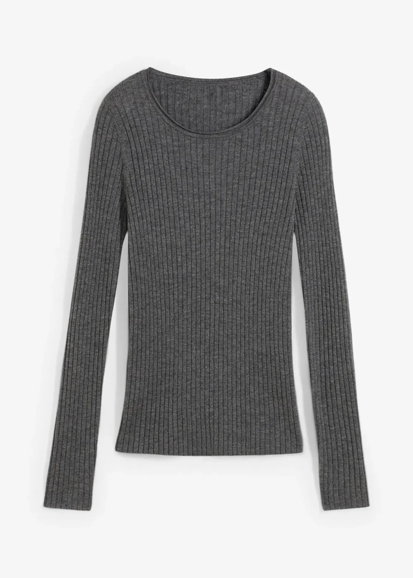 Pull côtelé à col rond 100% laine mérinos de qualité supérieure