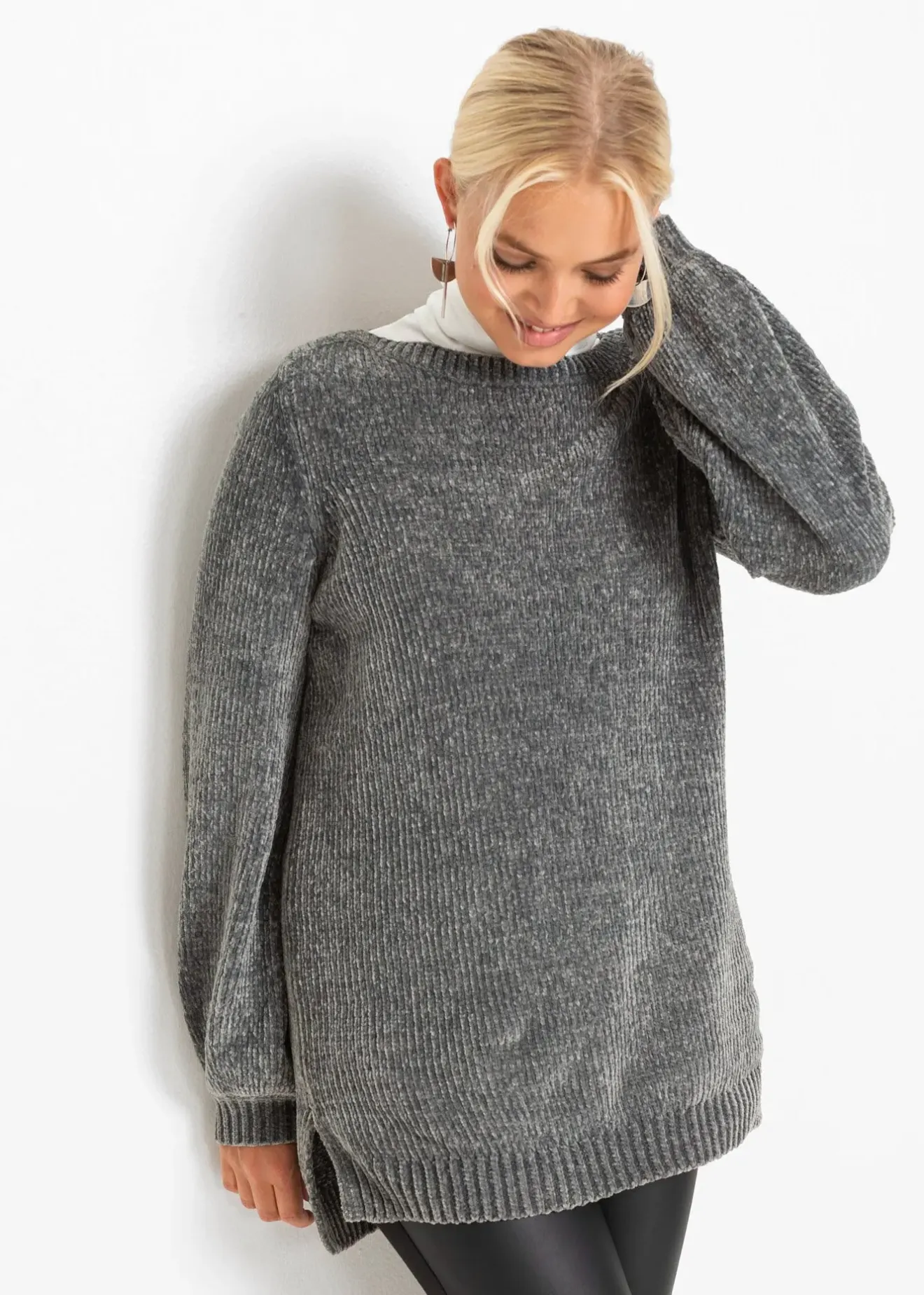 Pull en maille chenille douillette, avec fentes latérales
