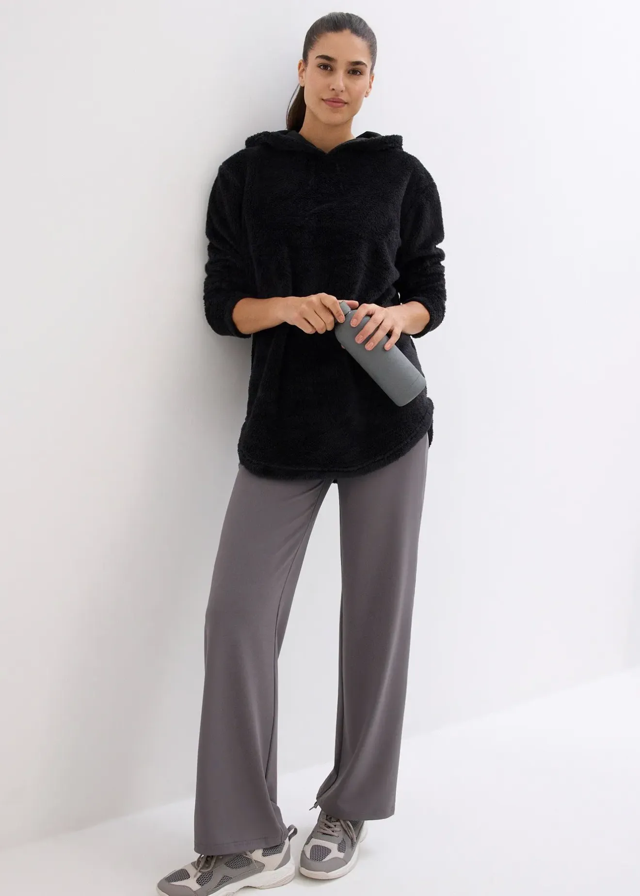 Pull long oversize en polaire peluche, plus long dans le dos