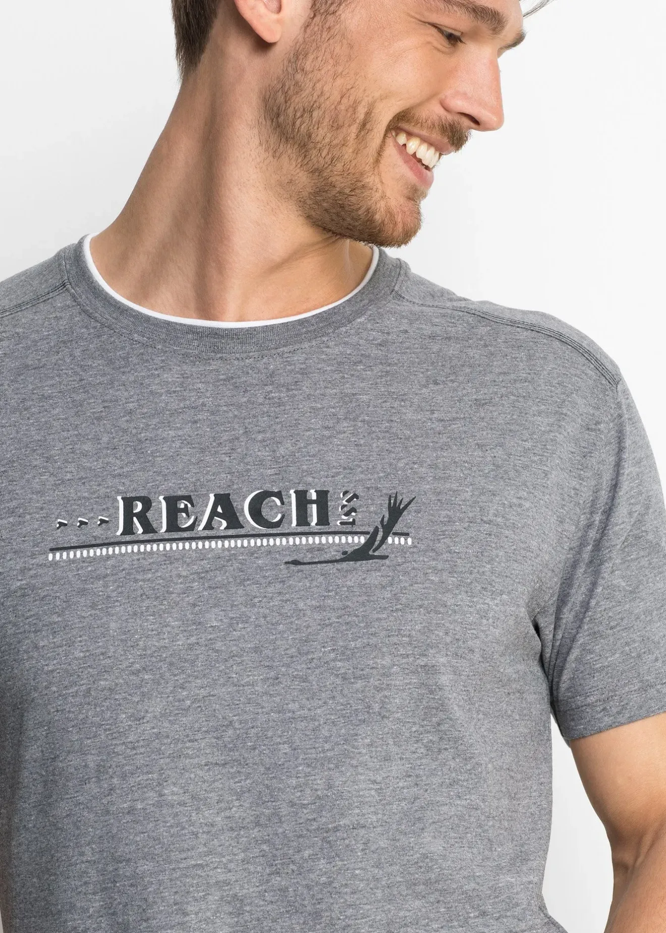 Pyjashort sportif 2 pièces 100% coton pour homme de la collection bpc. T-shirt à inscription sur la poitrine, col en double épaisseur, short ample à taille élastiquée et motif imprimé sur le côté.