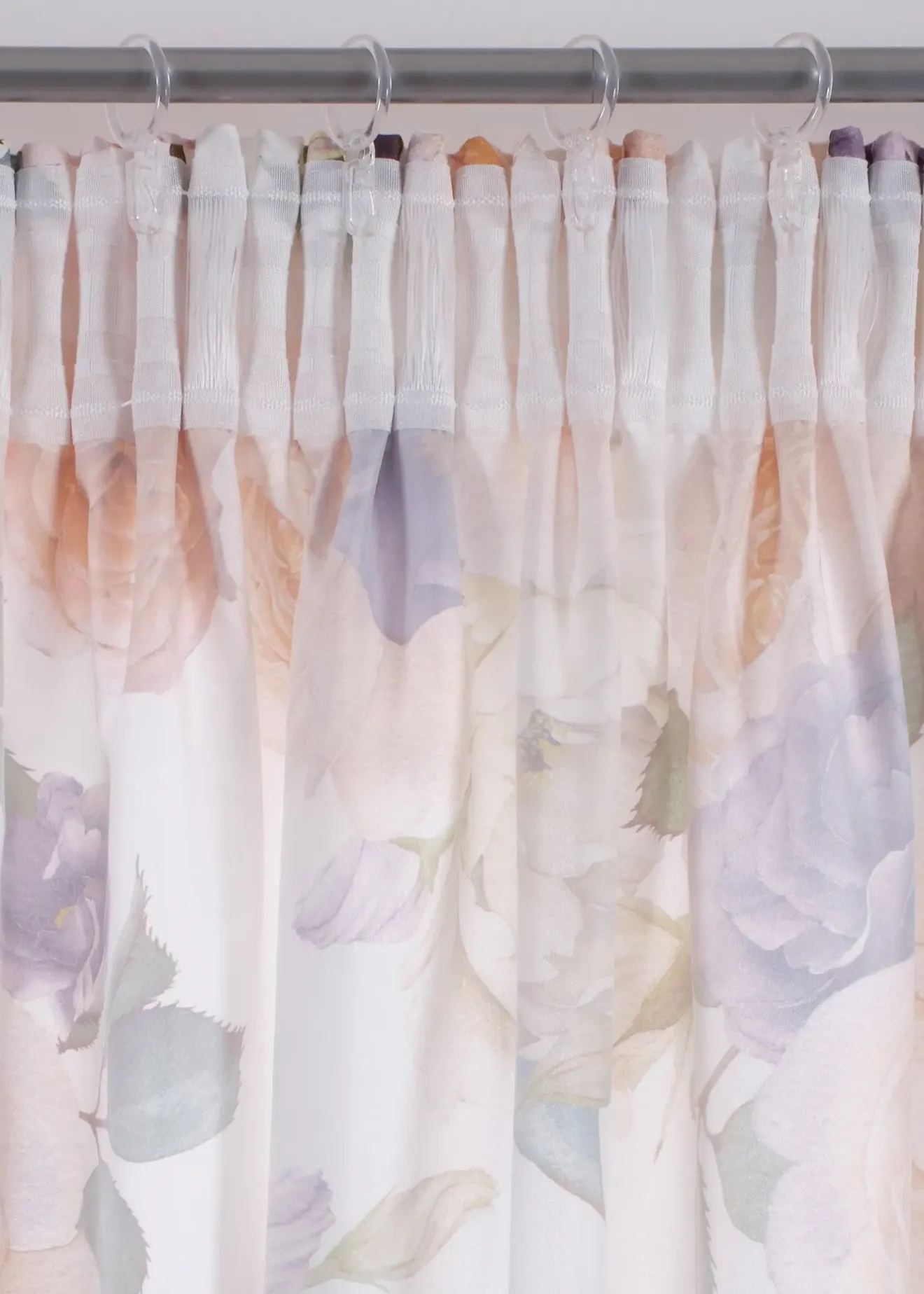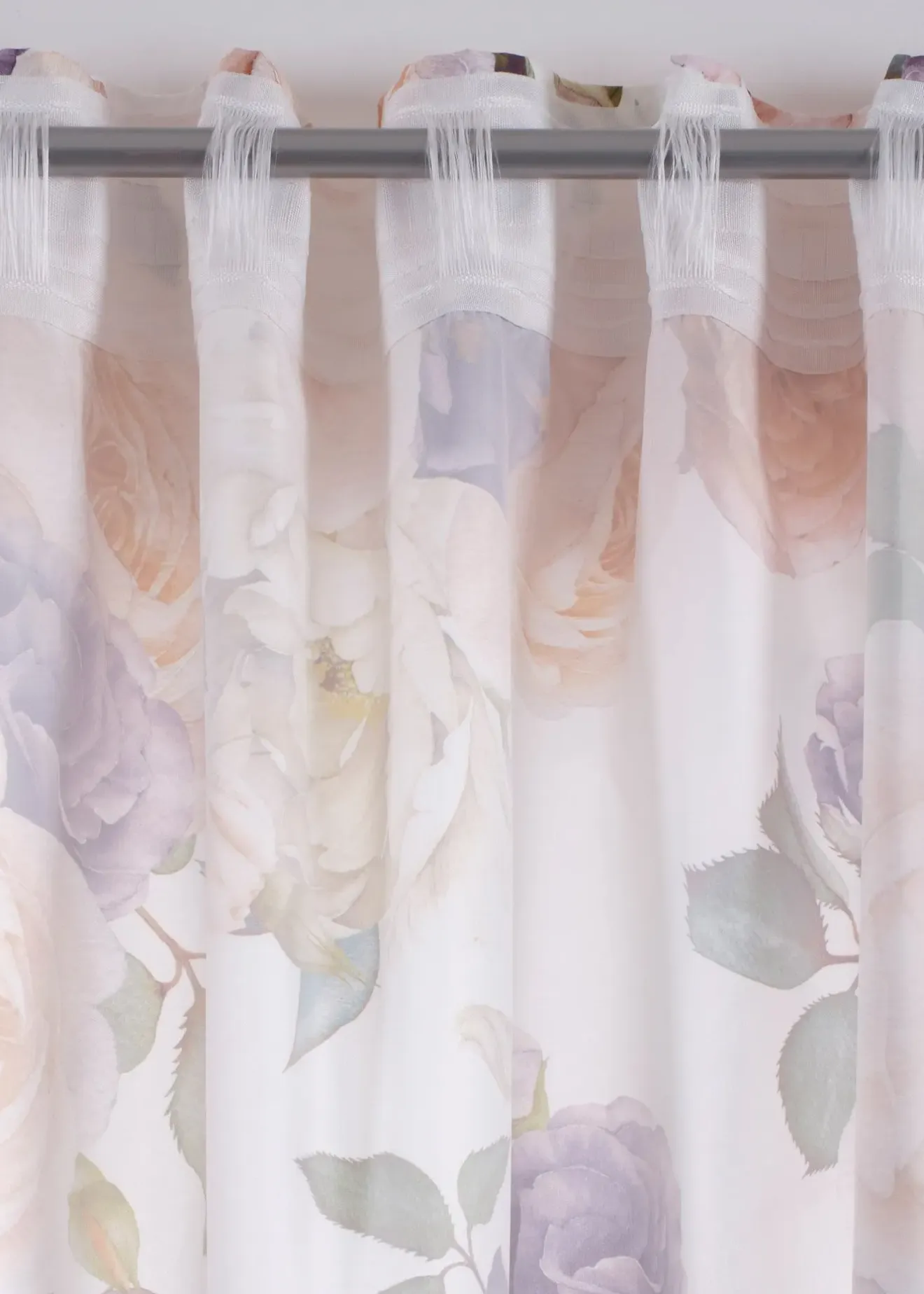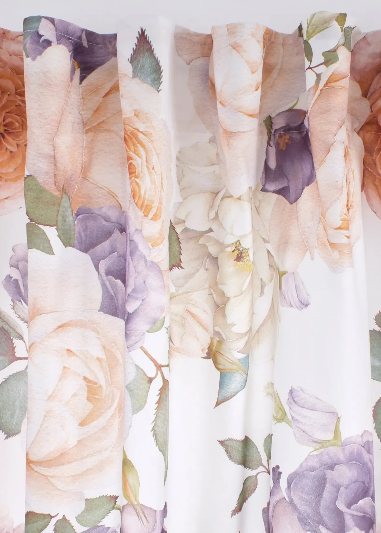 Rideaux au design floral romantique imprimé sur un tissu microfibre opaque.