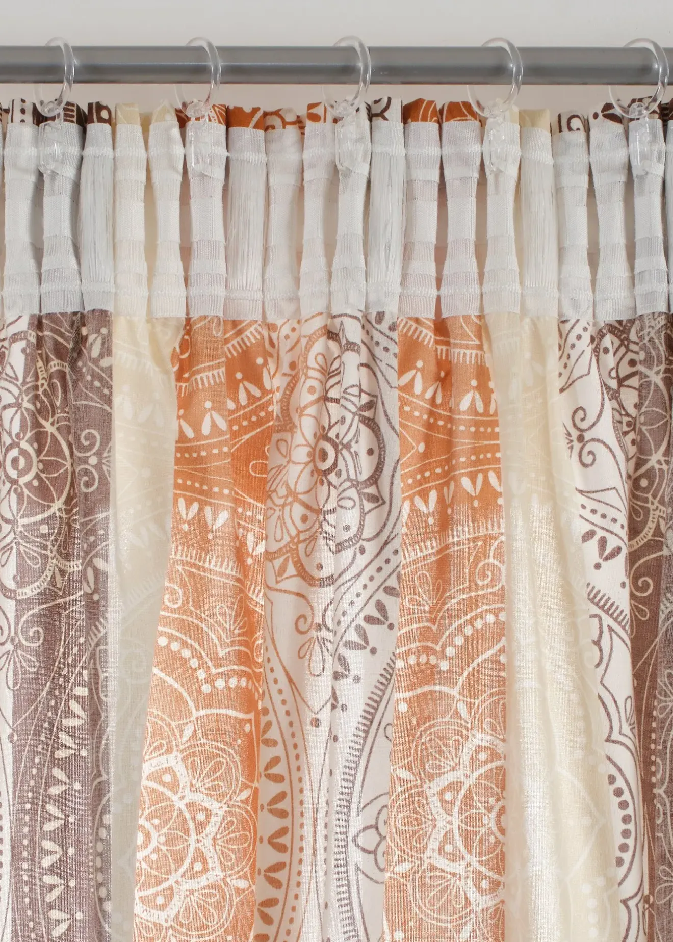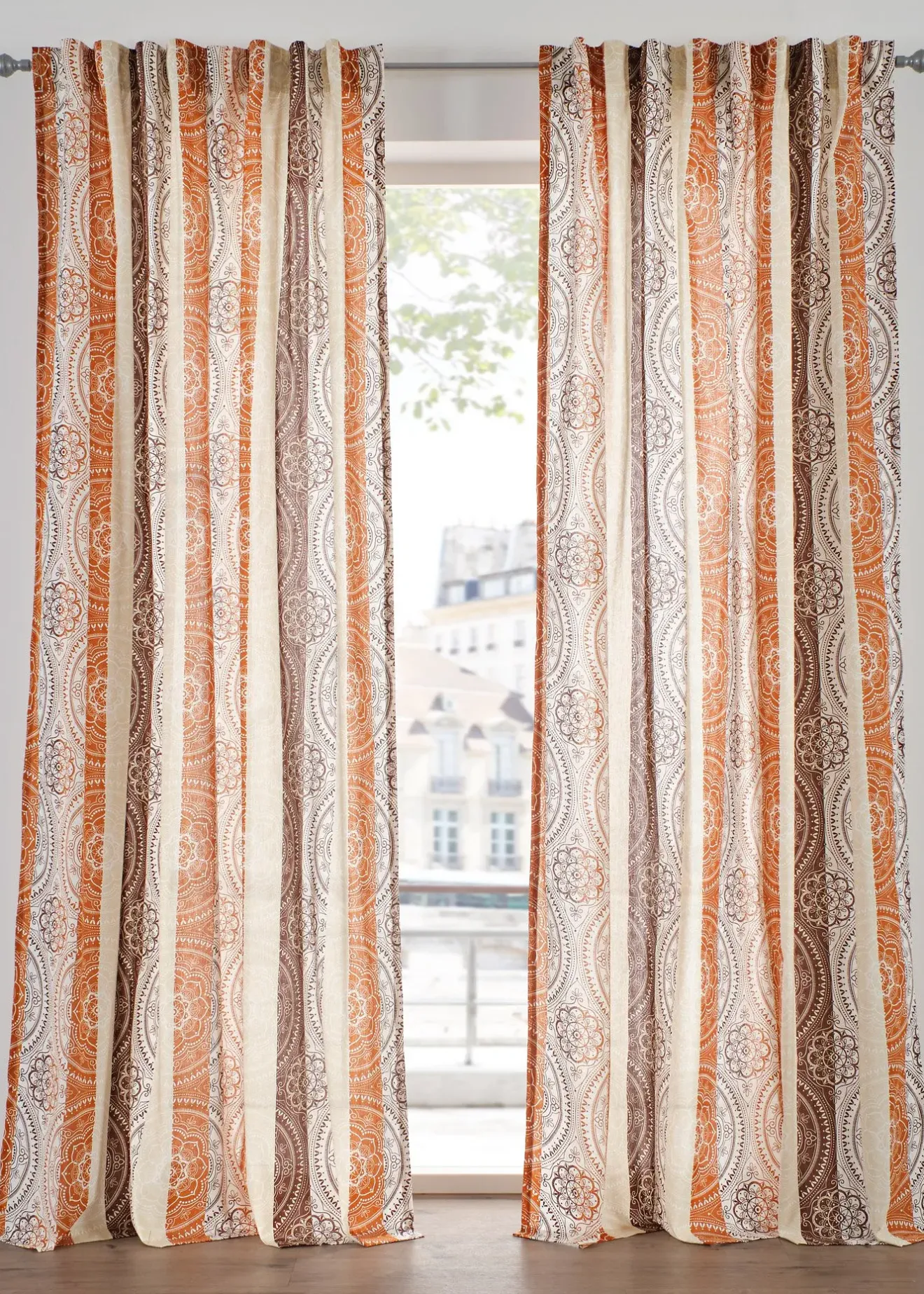 Besoin d’une nouvelle déco à vos fenêtres ? Ce rideau est imprimé d’un motif graphique sur le devant et composé d’un tissu mélangé opaque. Dos clair et sans imprimé.