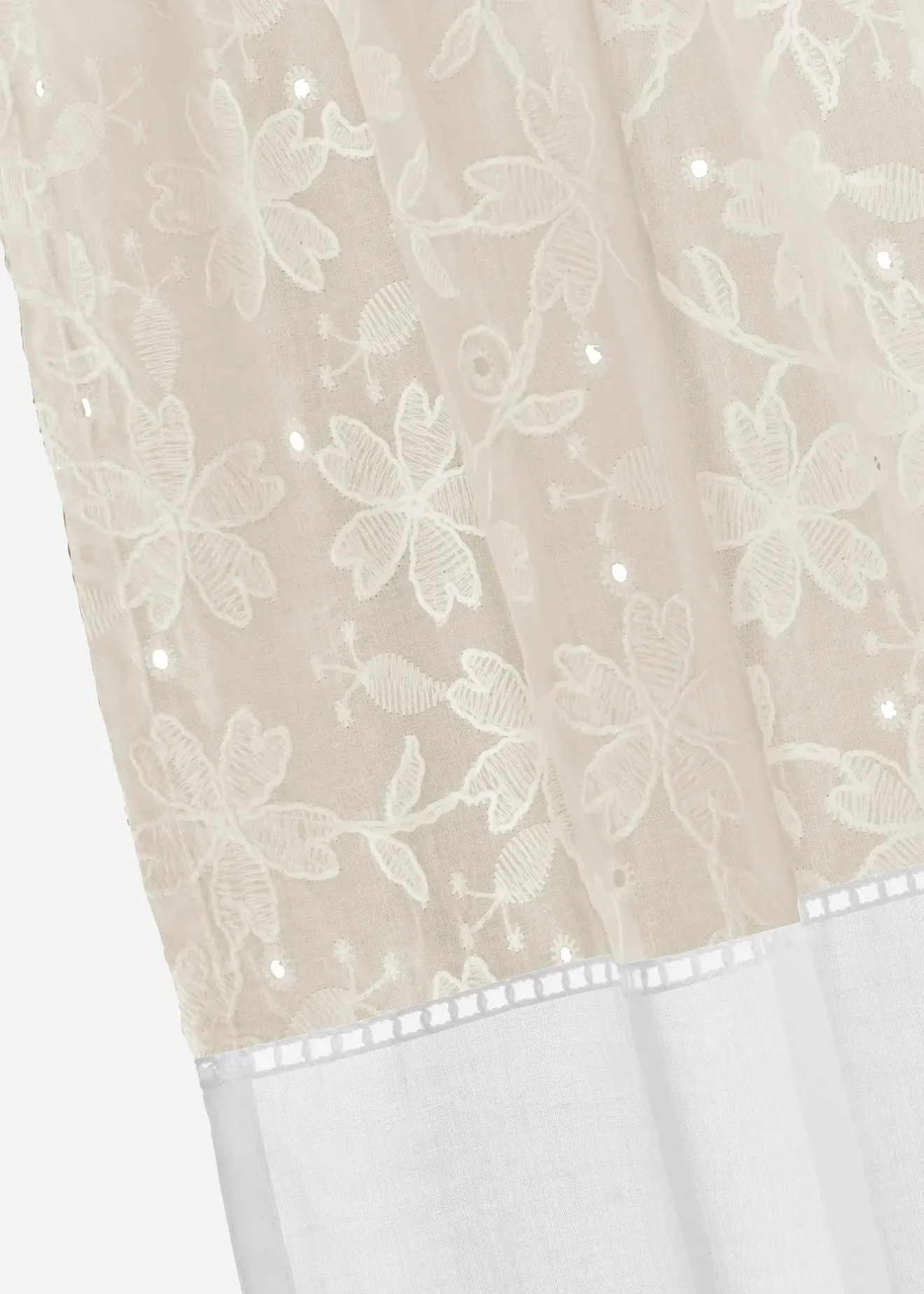 Ce rideau style campagne séduit par la finesse de ses détails, comme la broderie décorative et la bordure délicatement crochetée. Son tissu en coton est transparent.