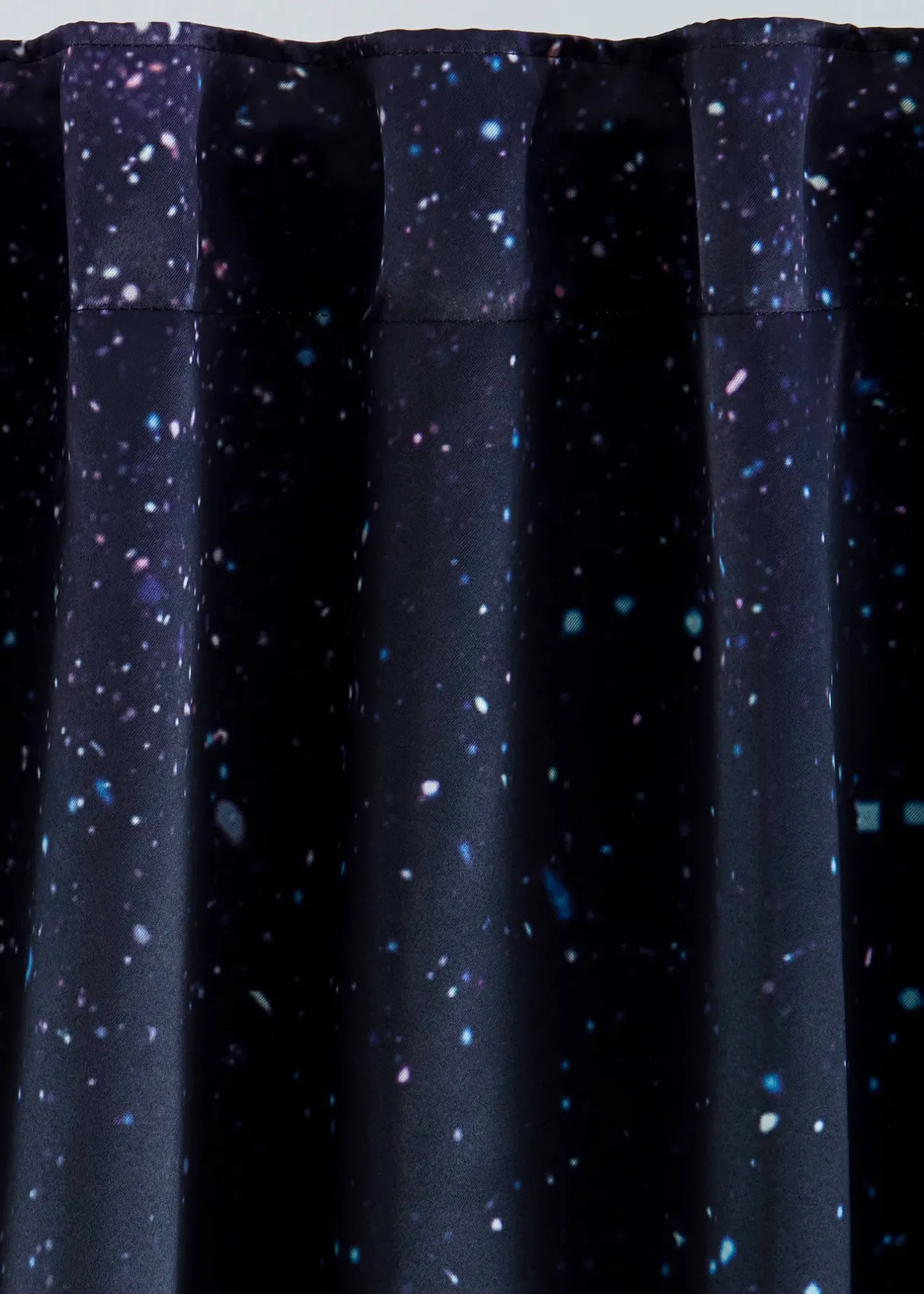 Rideau obscurcissant moderne avec un superbe imprimé de ciel étoilé sur le devant. Arrière clair et sans imprimé. Allie design et fonctionnalité, car son tissu lourd et occultant peut faire économiser de l’énergie. Empêche les courants d’air en hiver et lutte contre la chaleur en été.