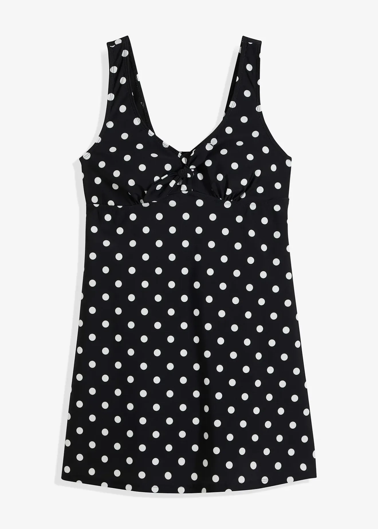 Cette robe de bain exclusive avec maillot 1 pièce intégré de bpc selection vous garantit une allure stylée à la plage et à la piscine. Ce maillot de bain style robe est doté d’un boxer intégré. Ses coques souples intégrées, sa doublure poitrine et sa bande élastique sous poitrine assurent un ajustement optimal. Ses larges bretelles non réglables offrent un grand confort, tandis que son décolleté plongeant en V sublime la poitrine. L’empiècement jupette de forme trapèze est directement monté sous la poitrine. Le petit nœud devant apporte une jolie touche finale.