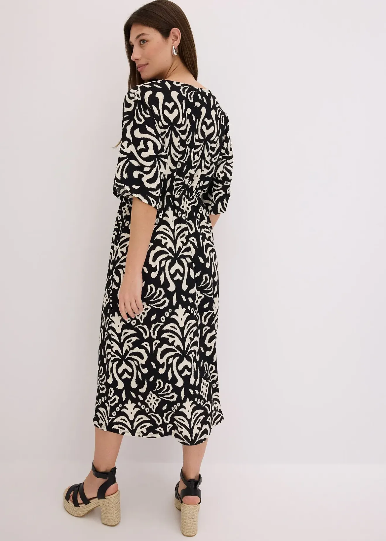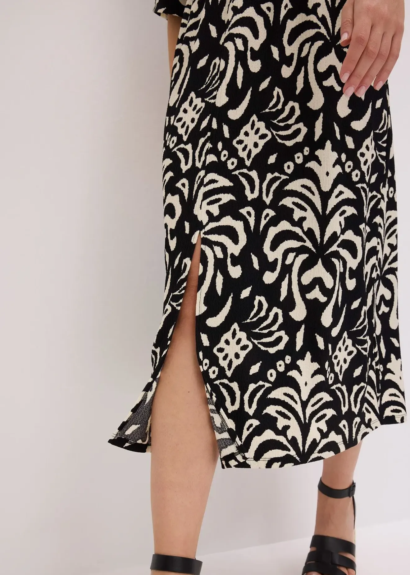 Robe midi à imprimé tendance, col en V plongeant et fente sur le devant de la jupe
