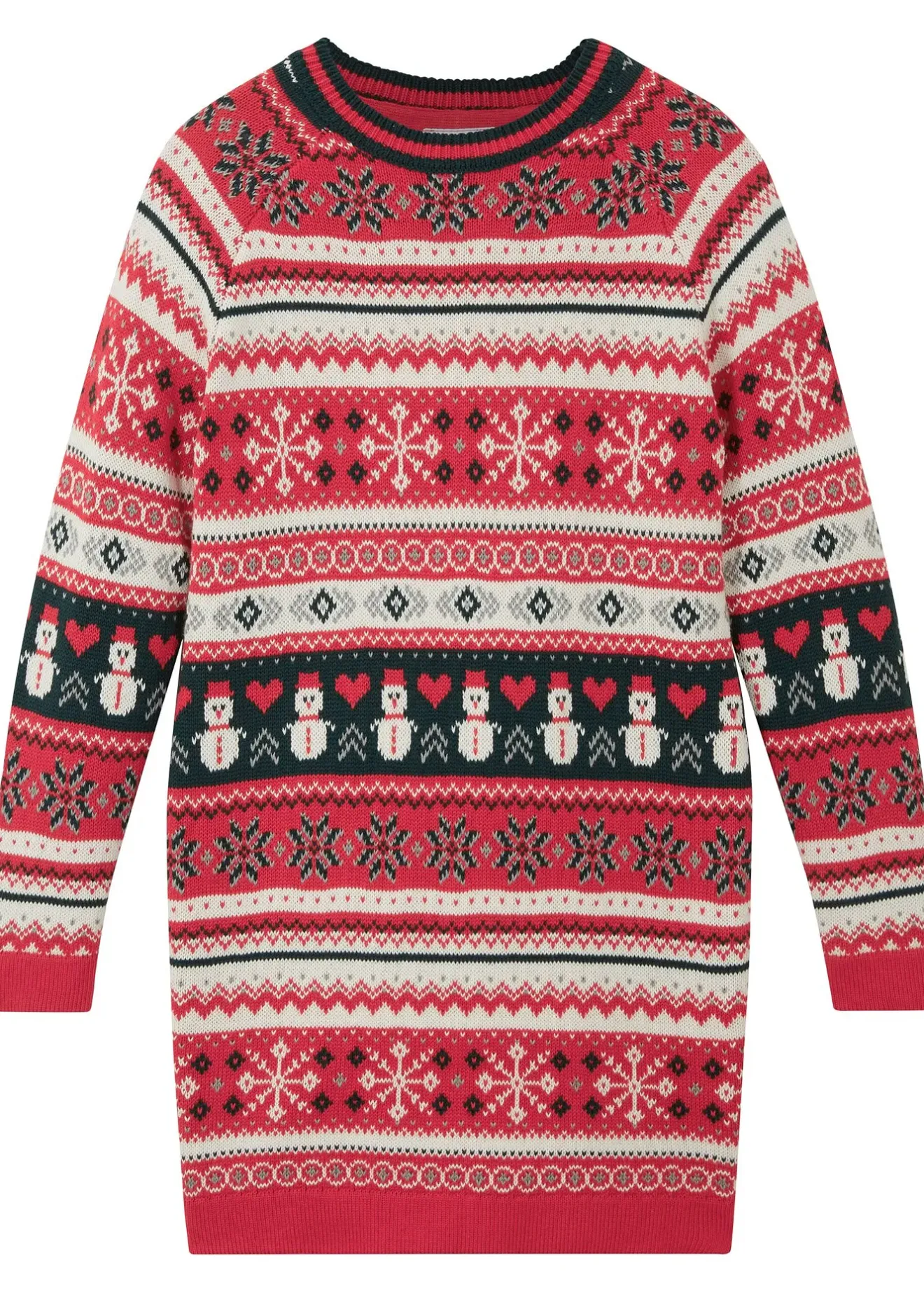 Cette robe en maille à motif hivernal accroche les regards. La base large, les poignets et l’encolure ronde en matière côtelée finalisent ce modèle à merveille. La maille fine et douce et la coupe décontractée assurent un excellent confort.