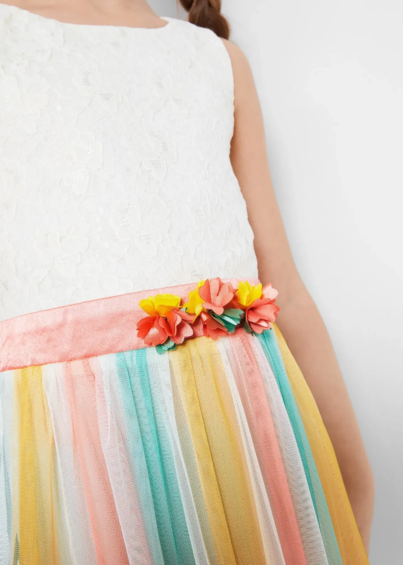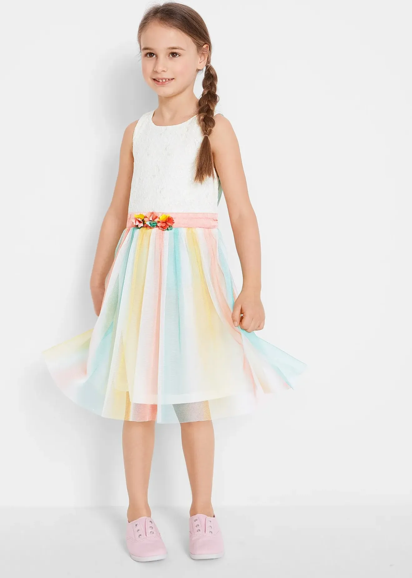 Magnifique robe de fête pour fille avec nœud dans le dos. Superbe dégradé de couleur sur la jupe et haut en dentelle.