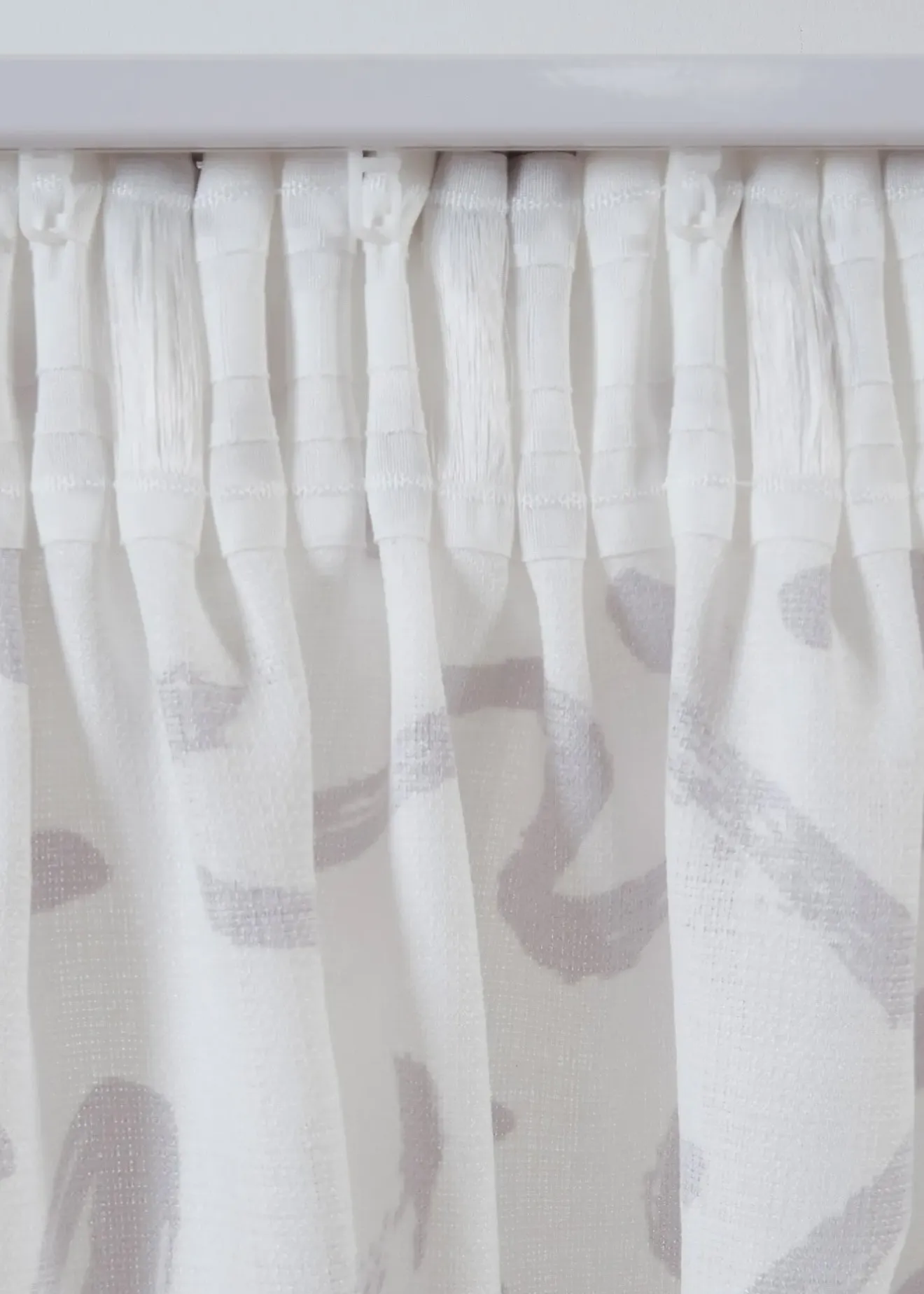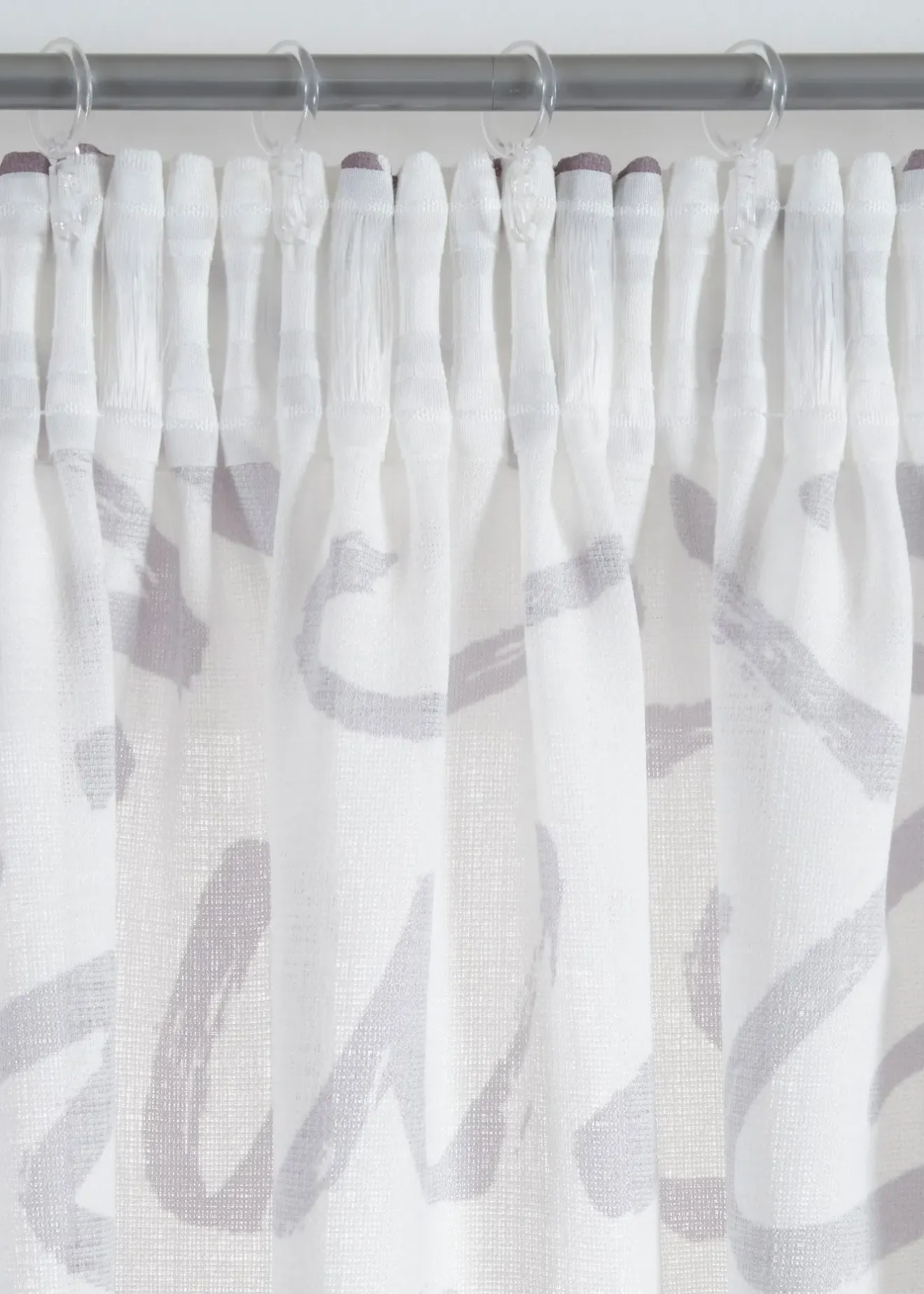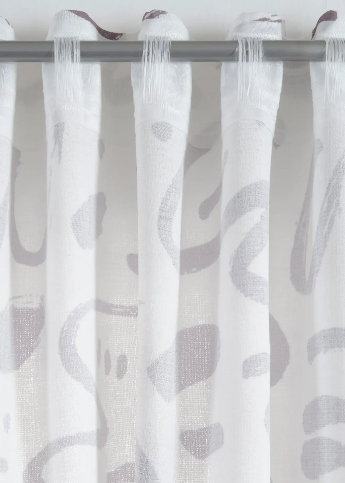 Rideau à motif graphique. Moderne, semi-transparent et disponible en extra long.